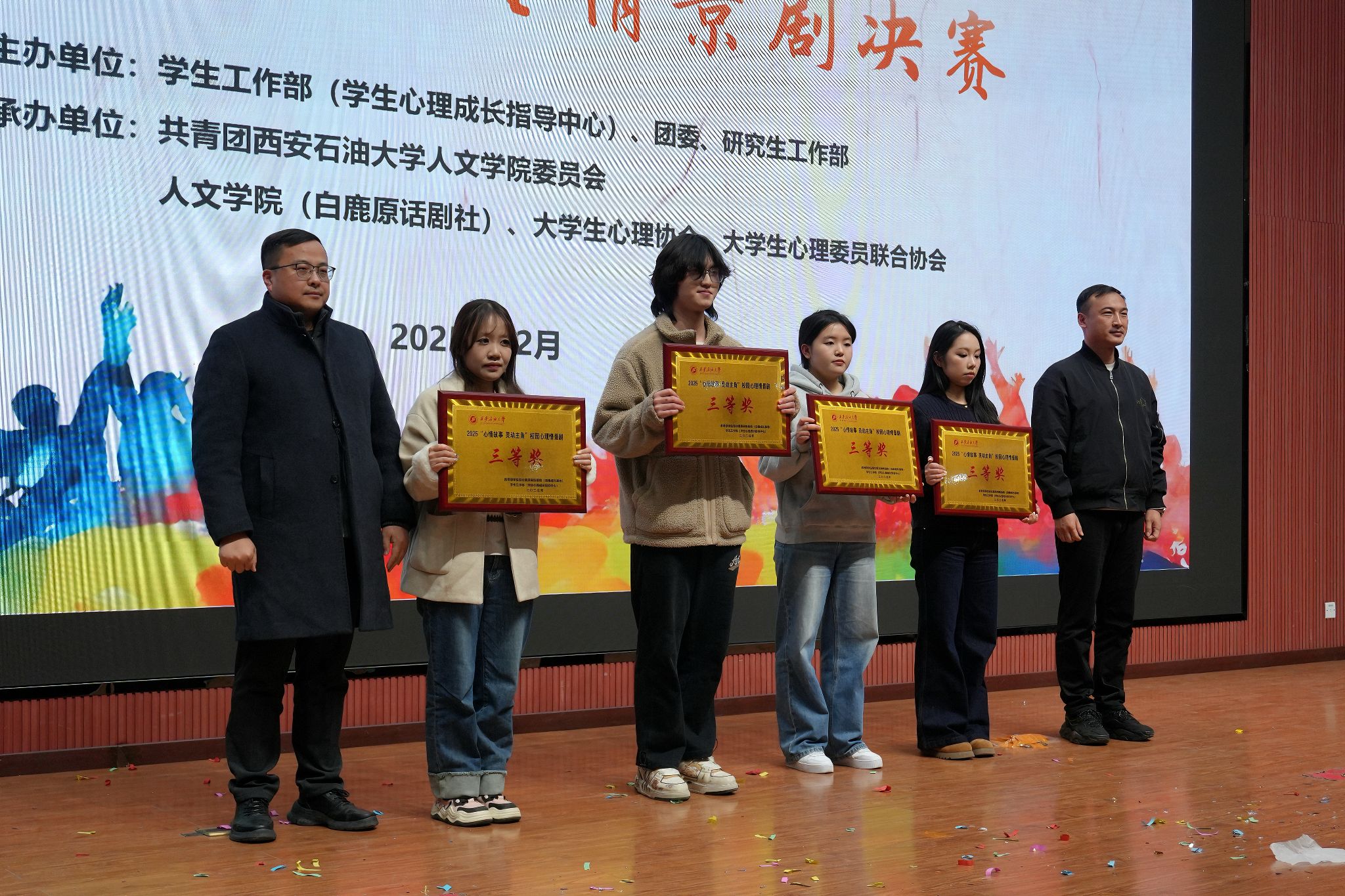 12月15日晚,我校2025年“心情故事 靈動主角”心理情景劇比賽在鄠邑校區(qū)弘石學(xué)術(shù)報告廳舉辦。副校長種宇宏出席活動并致辭,相關(guān)職能處室、院(系)負(fù)責(zé)人及300余名學(xué)生觀看了比賽。