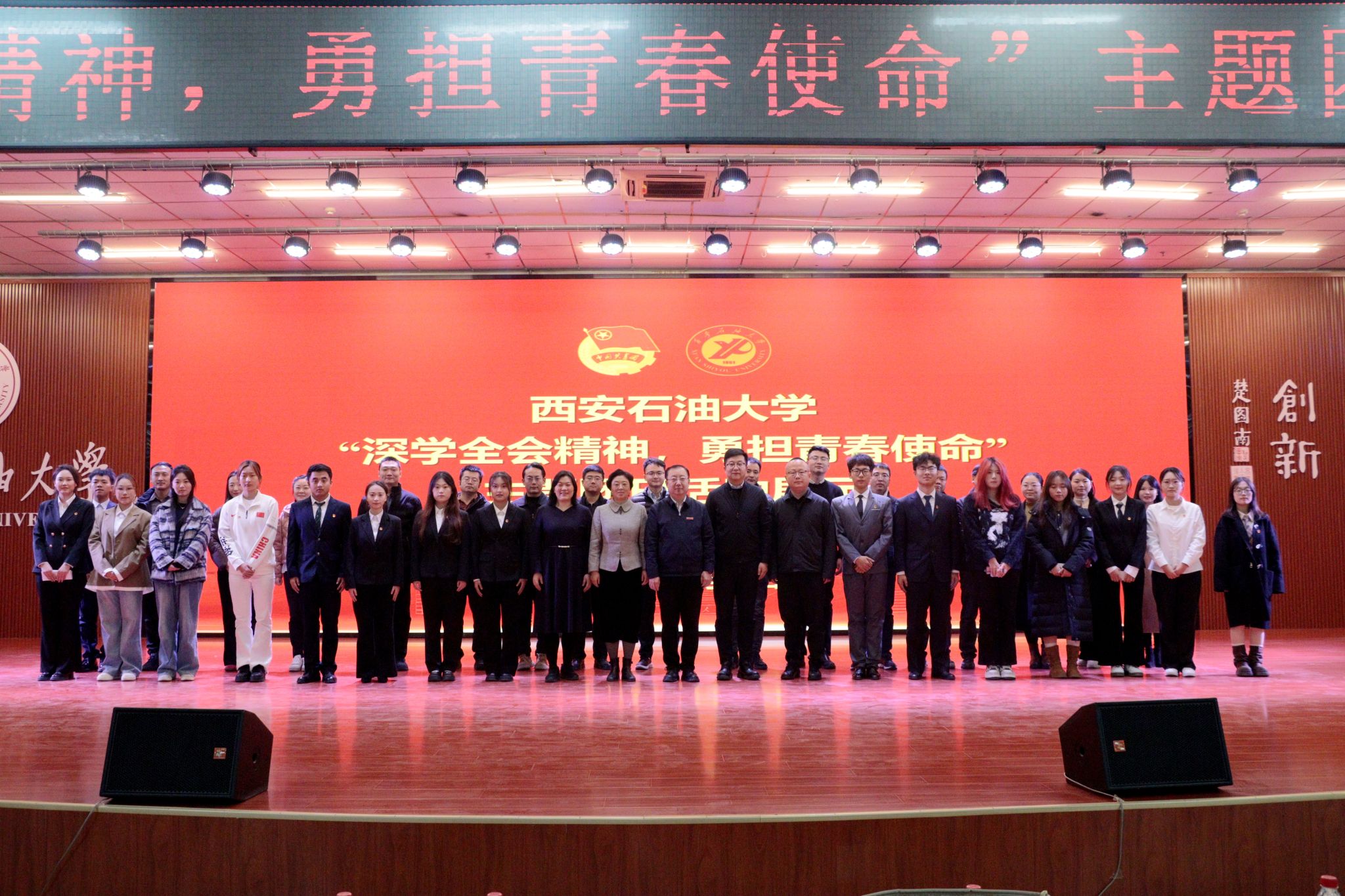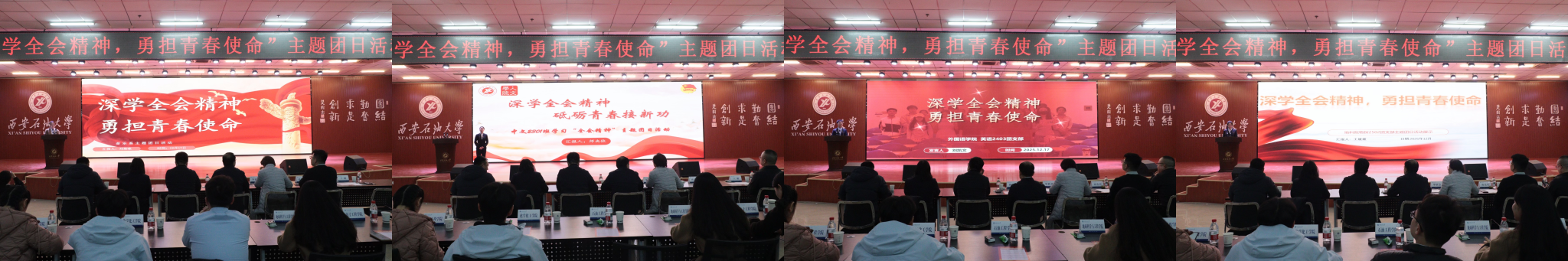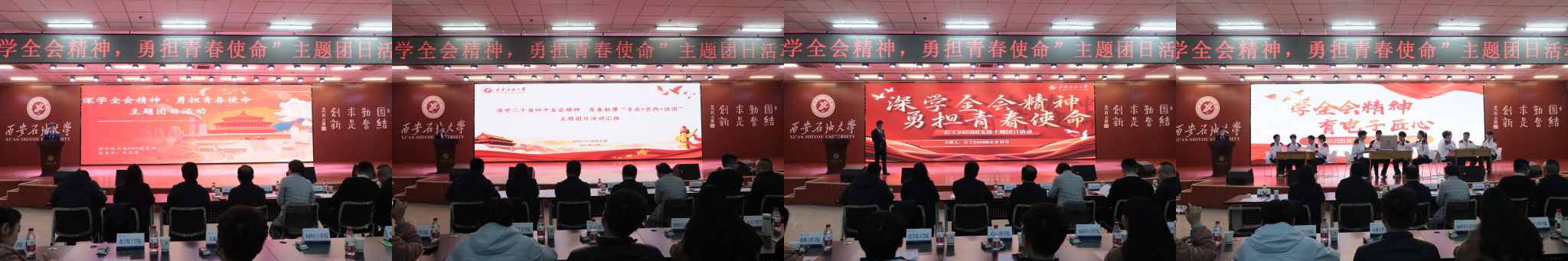 為引導團員青年深刻領會黨的二十屆四中全會精神核心要義,集中展示我?;鶎訄F組織風采和主題團日活動實效,發(fā)揮先進典型的示范引領作用,進一步激發(fā)全校團員青年的愛國熱情與奮斗精神,12月17日晚,學校在鄠邑校區(qū)騰輝大學生活動中心舉辦“深學全會精神,勇?lián)啻菏姑敝黝}團日活動展示,副校長種宇宏出席,相關職能處室負責人擔任評委,各院(系)團委(團總支)書記及300余名學生代表參加活動。
