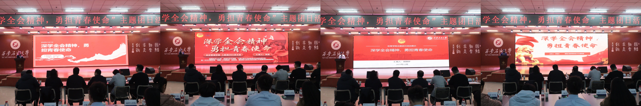 本次活動自啟動以來,各基層團支部圍繞主題開展豐富多樣的團日活動,經(jīng)院(系)擇優(yōu)遴選,16個優(yōu)秀團支部脫穎而出進入校級展示。展示現(xiàn)場,各團支部緊扣“深學全會精神,勇?lián)啻菏姑敝黝},通過PPT匯報、情景劇演繹、主題演講、短視頻展播等多種創(chuàng)新形式,全方位呈現(xiàn)團組織建設工作成效。從理論學習常態(tài)化機制構建到“專業(yè)+實踐+強國”的融合實踐,從志愿服務的暖心瞬間到校園文化中的青春風采,各支部以詳實數(shù)據(jù)、鮮活案例和深刻感悟,生動詮釋了新時代青年大學生的理想信念與責任擔當。