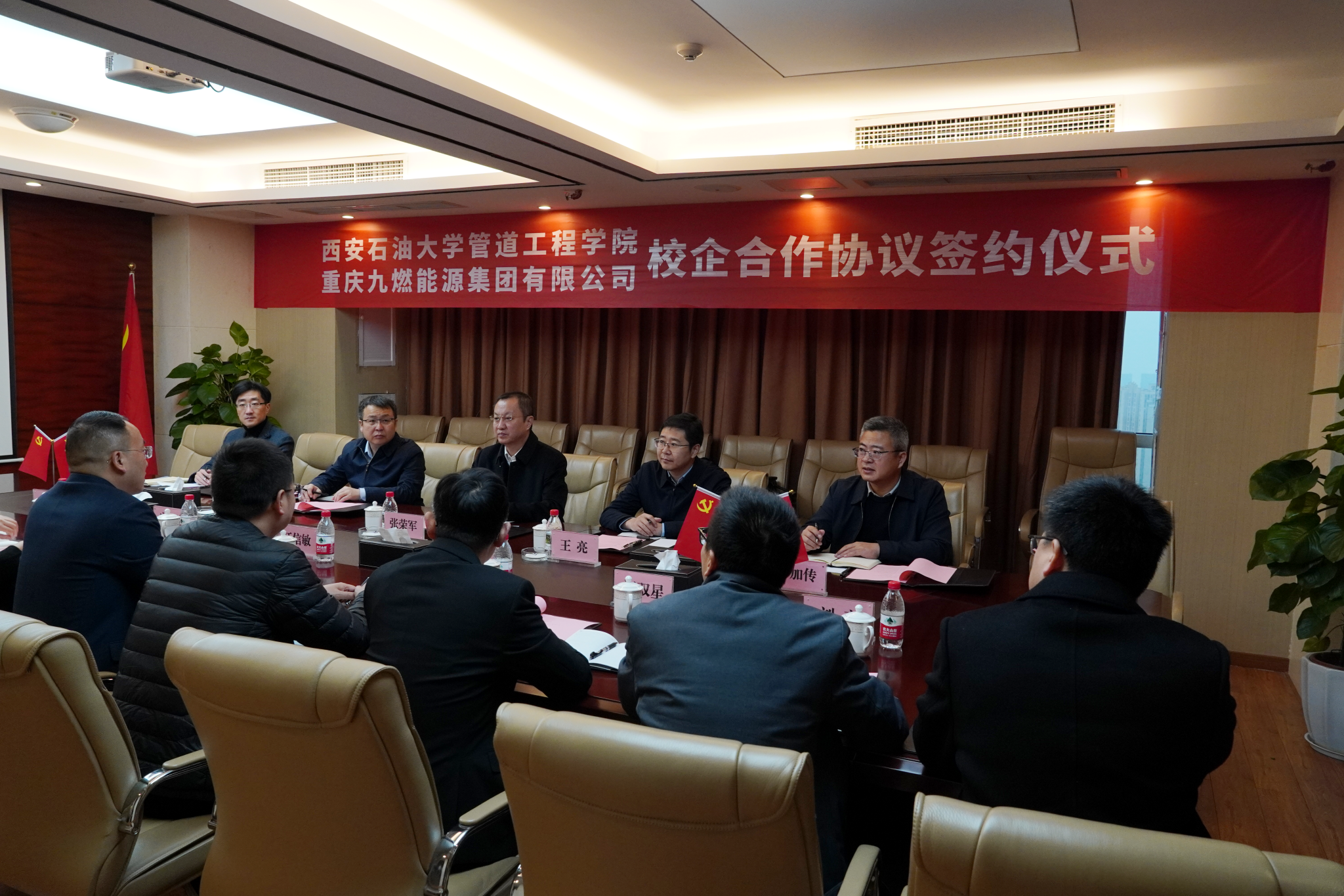 為促進(jìn)我校產(chǎn)學(xué)研協(xié)同發(fā)展與企業(yè)需求精準(zhǔn)對(duì)接,實(shí)現(xiàn)資源共享與優(yōu)勢(shì)互補(bǔ),12月22日,副校長(zhǎng)張榮軍帶隊(duì)赴重慶九燃能源集團(tuán)有限公司(以下簡(jiǎn)稱“九燃能源集團(tuán)”)交流座談,并代表學(xué)校與集團(tuán)簽署校企合作框架協(xié)議,九燃能源集團(tuán)董事長(zhǎng)江信敏及相關(guān)部門負(fù)責(zé)人出席活動(dòng)。雙方圍繞課題研究、專業(yè)建設(shè)、人才培養(yǎng)、學(xué)生實(shí)習(xí)就業(yè)、員工繼續(xù)教育與培訓(xùn)等方面展開(kāi)深入交流。