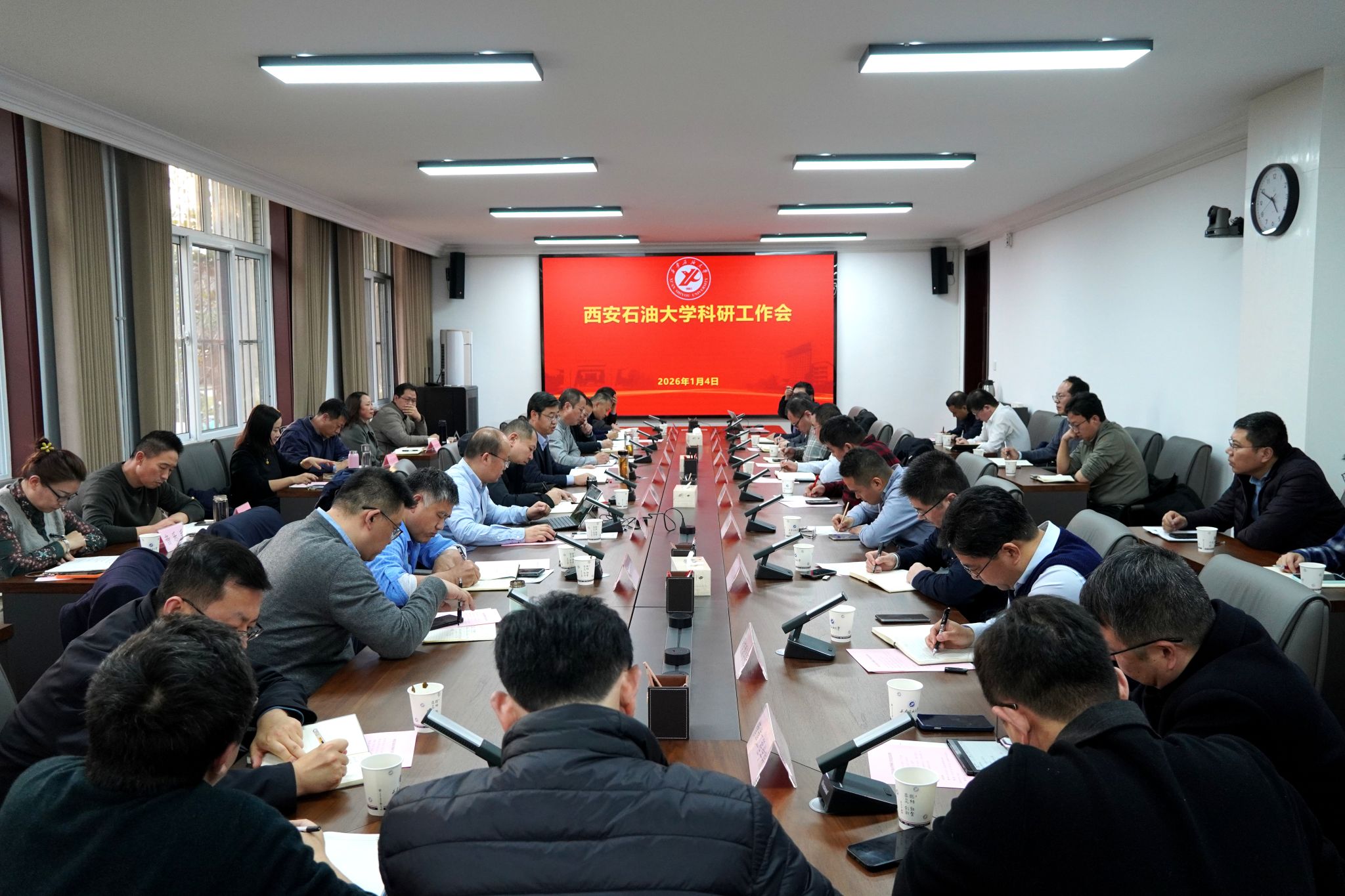 王進富作總結(jié)講話,他對學(xué)校2025年科研創(chuàng)新工作成效表示充分肯定,對各院(系)的辛勤付出表示衷心感謝,對下一步科研工作提出具體要求。一要統(tǒng)一思想。2025年度科研創(chuàng)新工作邁上新臺階,提振了全校科研工作者的信心。要進一步統(tǒng)一思想,持續(xù)強化有組織的科研,改革各種機制體制問題,確保“十五五”規(guī)劃取得良好開局。二要正視問題。“十四五”期間,學(xué)校科研規(guī)模與層次顯著提升,標(biāo)志性成果不斷涌現(xiàn),但是面對行業(yè)競爭和資源短缺,學(xué)校科研工作還存在不足。第一,有組織科研亟待加強,具體表現(xiàn)在大項目不夠多,跨學(xué)科大團隊的協(xié)作不夠,科研生態(tài)還需進一步優(yōu)化,因此要從學(xué)校的政策層面、評價層面、管理層面等持續(xù)發(fā)力。第二,青年科研骨干成長體系亟待優(yōu)化,青年教師作為學(xué)??蒲泄ぷ鞯闹髁姾秃髠淞α浚ㄟ^大科研項目培養(yǎng)青年科研骨干,在政策創(chuàng)新上支持青年教師主體作用發(fā)揮和未來科研力量培育。第三,學(xué)科轉(zhuǎn)化優(yōu)勢亟待提升,學(xué)校作為行業(yè)特色鮮明的省屬高水平大學(xué),主干學(xué)科必須要找到自身的獨特優(yōu)勢,通過有組織的方式來不斷凝練和培育科研特色方向和優(yōu)勢領(lǐng)域。三要謀劃未來。第一,強化有組織科研,優(yōu)化公關(guān)模式。區(qū)域上重點突出鄂爾多斯盆地,關(guān)注延長和長慶等重點領(lǐng)域,打破學(xué)科壁壘,形成跨學(xué)科、跨專業(yè)的科研團隊。第二,深化科研政策改革,營造良好的創(chuàng)新生態(tài)。首先創(chuàng)新思路,從科研合作組織的層面上,要改變傳統(tǒng)單兵作戰(zhàn)和科研合作模式;其次創(chuàng)新政策,科研管理部門要不斷強化資源配置,多途徑調(diào)動科研工作者積極性;再次,創(chuàng)新組織和創(chuàng)新評價,要不斷改革人事制度和人才政策,強化科研大項目的引領(lǐng)作用,激活個體的動力和活力。第三,深化開放合作,拓展科研格局。要不斷深化國際開放合作,持續(xù)開放辦學(xué),與龍頭企業(yè)開展實質(zhì)合作,共建國家級平臺、共同承辦國際會議等,充分依托學(xué)校國際合作辦學(xué)的優(yōu)勢,積極開展國際科研合作。王進富最后強調(diào),2026年是“十五五”規(guī)劃的開局之年,科研工作要更加聚焦“兩深一非一老”油氣勘探開發(fā)主戰(zhàn)場,緊密服務(wù)國家重大戰(zhàn)略需求和區(qū)域經(jīng)濟社會發(fā)展。立足學(xué)校自身發(fā)展定位,緊密對接產(chǎn)業(yè)需求,推動產(chǎn)業(yè)和科技創(chuàng)新協(xié)同發(fā)展,激發(fā)教師科研創(chuàng)新的動力與潛力。