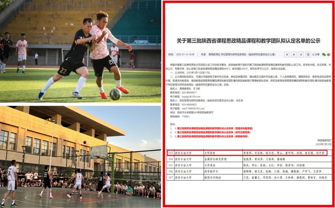 深耕體育思政內(nèi)涵,創(chuàng)新特色育人模式。學(xué)院立足石油石化行業(yè)特色背景,創(chuàng)新提出“雙精神互融”體育育人理念,推動(dòng)“鐵人精神”與體育精神的深度耦合,打造具有一定特色的育人模式。學(xué)院設(shè)立“體育素養(yǎng)與石油職業(yè)適應(yīng)性”專題模塊,在訓(xùn)練中融入“鐵人式”體能挑戰(zhàn),在競(jìng)賽中打造“石油杯”等行業(yè)主題賽事,將“能源報(bào)國(guó)”使命擔(dān)當(dāng)與體育競(jìng)技堅(jiān)韌品格深度融合,構(gòu)建起“課內(nèi)外一體化”全域育人生態(tài)。2025年,《大學(xué)體育》課程教學(xué)團(tuán)隊(duì)成功獲批陜西省課程思政示范課程和教學(xué)團(tuán)隊(duì),其體育課程思政建設(shè)經(jīng)驗(yàn)被多所高校借鑒采納,形成“一校創(chuàng)新、多校聯(lián)動(dòng)”的推廣格局,讓西石大體育育人經(jīng)驗(yàn)走出校園、輻射行業(yè)。