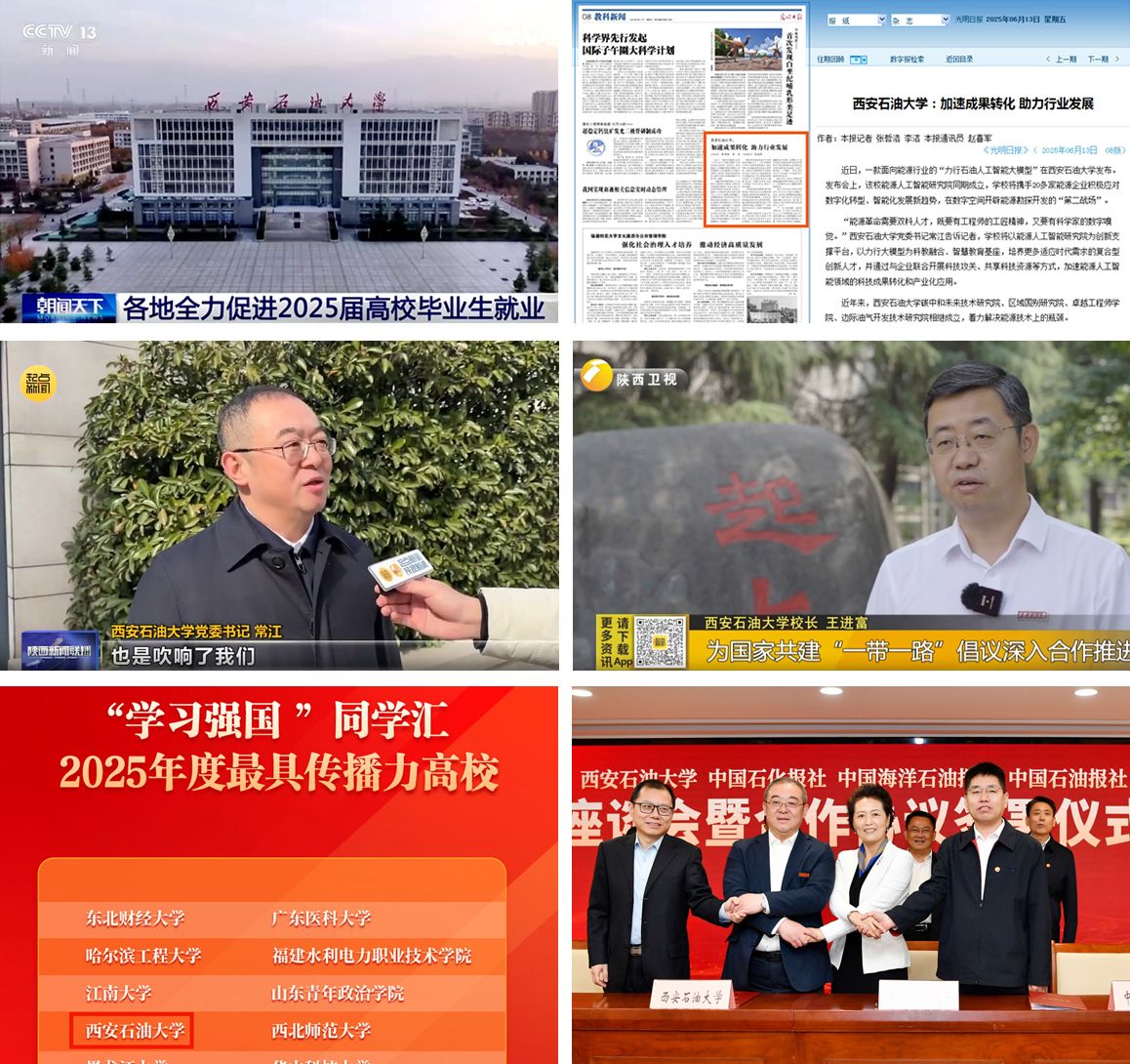 2025年,西安石油大學(xué)始終以習(xí)近平新時(shí)代中國(guó)特色社會(huì)主義思想為指導(dǎo),緊扣立德樹(shù)人根本任務(wù),錨定“理想西石大”建設(shè)目標(biāo),深入貫徹第三次黨代會(huì)精神,創(chuàng)新構(gòu)建“主流媒體+海媒平臺(tái)+新媒體”多元對(duì)外宣傳矩陣,在更廣領(lǐng)域、更深層次講好西石大故事、傳播西石大聲音,持續(xù)提升學(xué)校美譽(yù)度與社會(huì)影響力,為學(xué)校高質(zhì)量發(fā)展?fàn)I造了良好輿論氛圍。