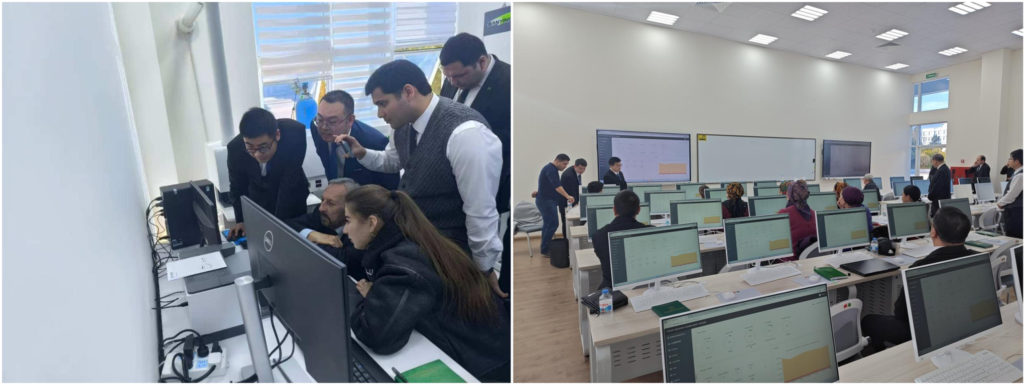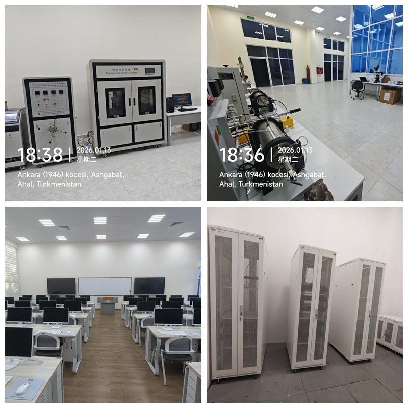 此次中方赴土工作團(tuán)組共計(jì)17人,分三批于2025年12月27日、2026年1月6日及1月11日陸續(xù)抵達(dá)卡卡耶夫國際油氣大學(xué),歷經(jīng)19天高效推進(jìn)施工驗(yàn)收工作。中方技術(shù)團(tuán)隊(duì)?wèi){借扎實(shí)的專業(yè)功底,順利完成2間地質(zhì)實(shí)驗(yàn)室、4間信息技術(shù)實(shí)訓(xùn)室的設(shè)施設(shè)備安裝、調(diào)試及測試運(yùn)營,所有設(shè)備均實(shí)現(xiàn)正常運(yùn)行,達(dá)到預(yù)設(shè)教學(xué)實(shí)驗(yàn)實(shí)訓(xùn)標(biāo)準(zhǔn),為后續(xù)教學(xué)活動(dòng)開展提供了可靠的硬件保障。