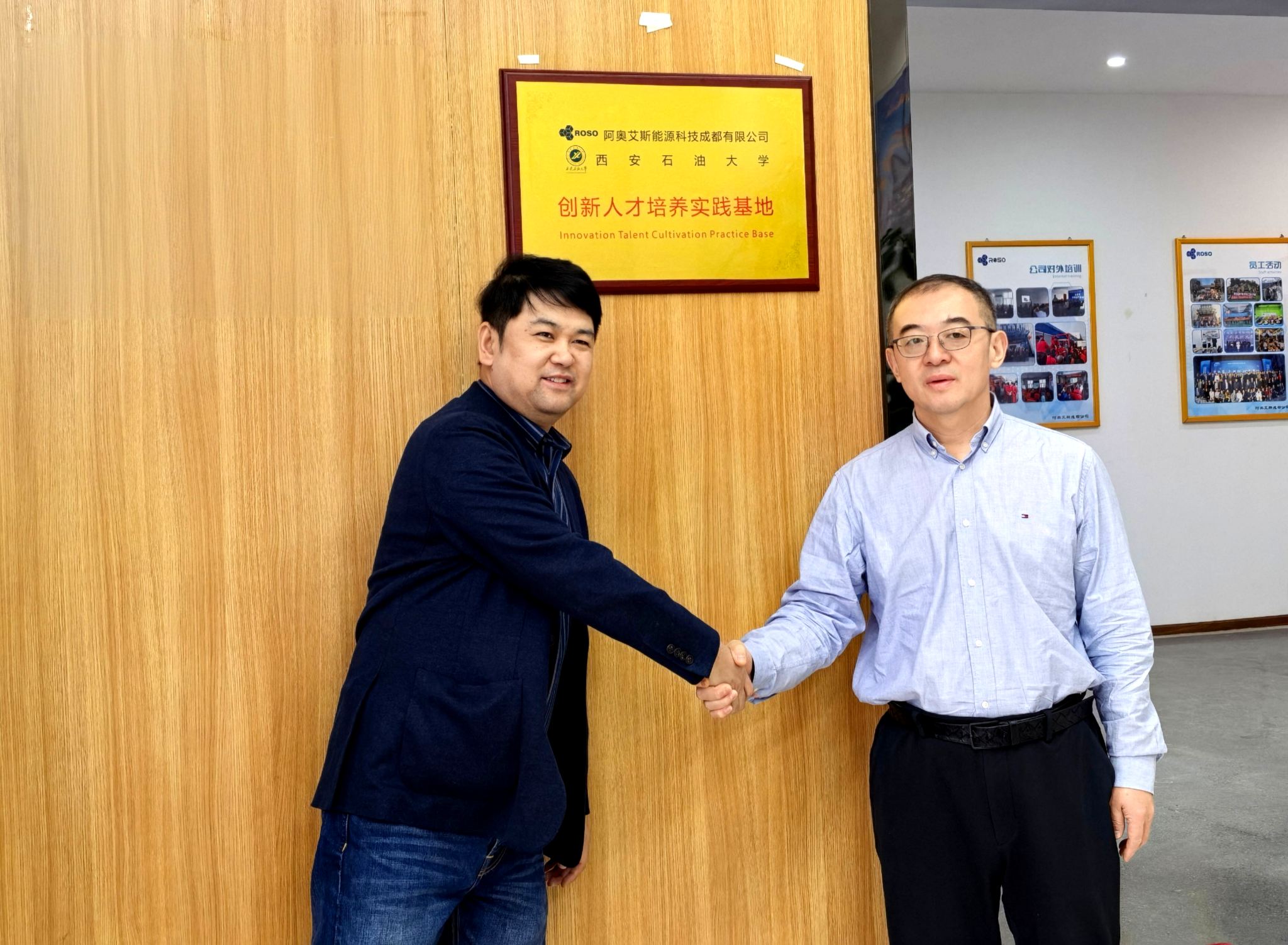 在阿奧艾斯能源科技成都有限公司,常江與公司總經(jīng)理聶鵬共同為校企人才創(chuàng)新培養(yǎng)實踐基地揭牌。揭牌儀式由公司副總經(jīng)理(我校機械電子工程專業(yè)2001屆校友)王啟中主持。常江對基地成功揭牌表示熱烈祝賀,向公司長期以來給予學校發(fā)展的關(guān)心與支持致以誠摯感謝。他指出,此次校企人才創(chuàng)新培養(yǎng)實踐基地的揭牌,既是雙方此前共建海南研究院、深化合作成果的升華與延續(xù),更是踐行立德樹人使命、推進教育改革創(chuàng)新的重要載體,也是服務國家戰(zhàn)略、賦能能源產(chǎn)業(yè)高質(zhì)量發(fā)展的關(guān)鍵舉措。