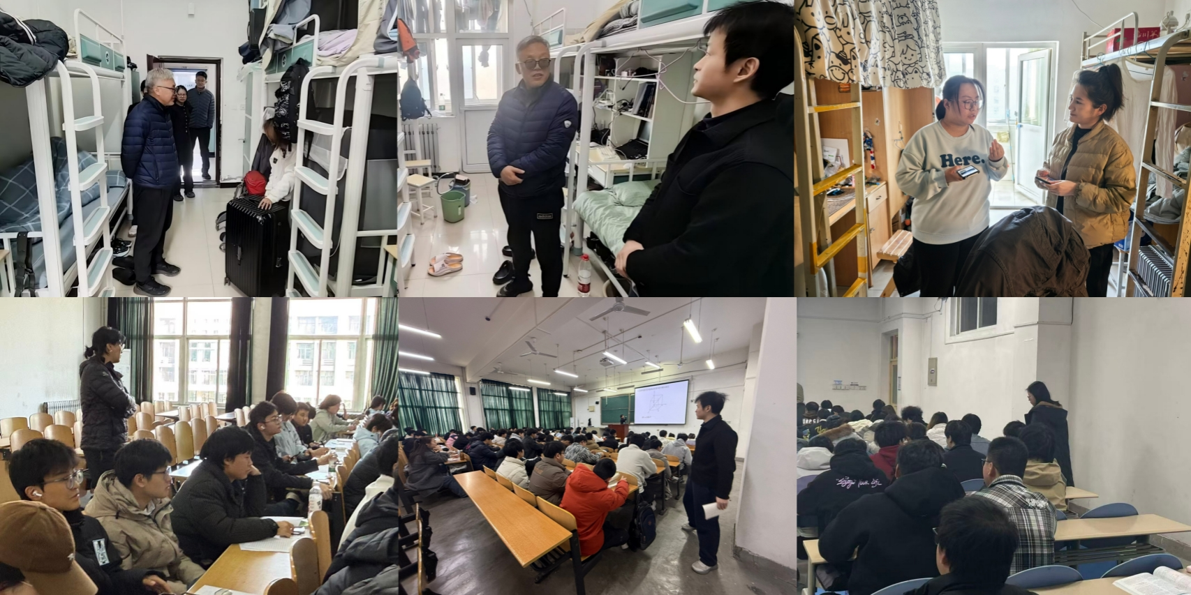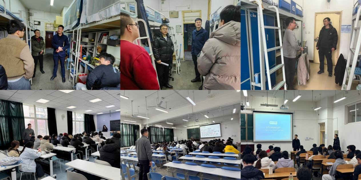 理學(xué)院于3月2日至5日開展全覆蓋走訪檢查工作,黨委書記席利哲、院長(zhǎng)折延宏、黨委副書記楊富民帶領(lǐng)全體輔導(dǎo)員和部分班主任分批次深入學(xué)生宿舍,了解返校適應(yīng)和學(xué)習(xí)生活需求,圍繞專業(yè)認(rèn)知、職業(yè)規(guī)劃交流座談,收集意見建議并現(xiàn)場(chǎng)解答困惑。院領(lǐng)導(dǎo)帶隊(duì)深入課堂,察學(xué)情、訪狀態(tài),實(shí)現(xiàn)首周全部課程檢查全覆蓋。學(xué)院還以班會(huì)和年級(jí)大會(huì)形式為全體本科生開展“開學(xué)第一課”,引導(dǎo)學(xué)生端正學(xué)習(xí)態(tài)度、加強(qiáng)學(xué)風(fēng)建設(shè),重點(diǎn)強(qiáng)調(diào)預(yù)防電信詐騙、加強(qiáng)網(wǎng)絡(luò)文明教育,守護(hù)校園安全穩(wěn)定。