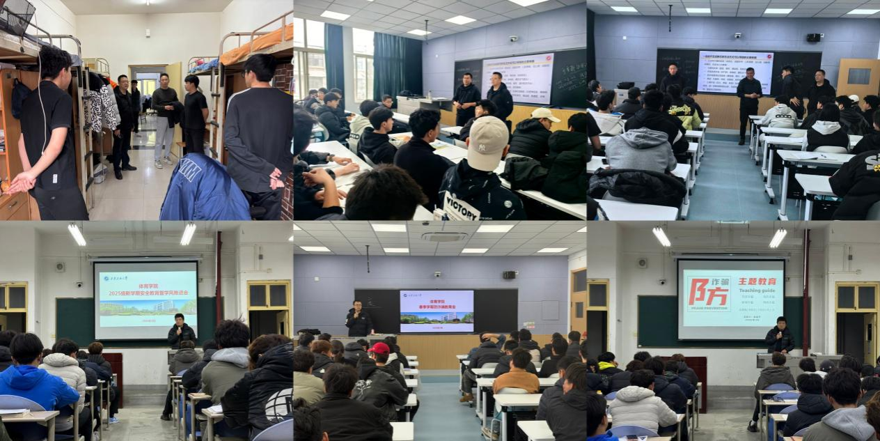 體育學(xué)院緊緊圍繞學(xué)生成長(zhǎng)需求和校園安全實(shí)際,多措并舉做好新學(xué)期學(xué)生安全教育暨學(xué)風(fēng)教育工作。學(xué)院領(lǐng)導(dǎo)班子及全體輔導(dǎo)員深入課堂一線隨堂聽課,重點(diǎn)關(guān)注學(xué)生聽課專注度、課堂參與度,課后與學(xué)生、任課教師深入交流,反饋教學(xué)建議,推動(dòng)教學(xué)與學(xué)生工作協(xié)同發(fā)力。黨政領(lǐng)導(dǎo)班子帶隊(duì)深入學(xué)生宿舍開展全面安全檢查,排查用電、消防等隱患,建立臺(tái)賬立行立改,結(jié)合真實(shí)案例開展防火、防盜、防詐騙安全教育,同時(shí)關(guān)注學(xué)生心理狀態(tài),做好心理疏導(dǎo)。學(xué)院依托各年級(jí)教育大會(huì)開展消防安全、交通安全、防傳染病安全等多元安全教育,利用線上平臺(tái)持續(xù)推送安全知識(shí),構(gòu)建全方位校園安全防護(hù)體系。