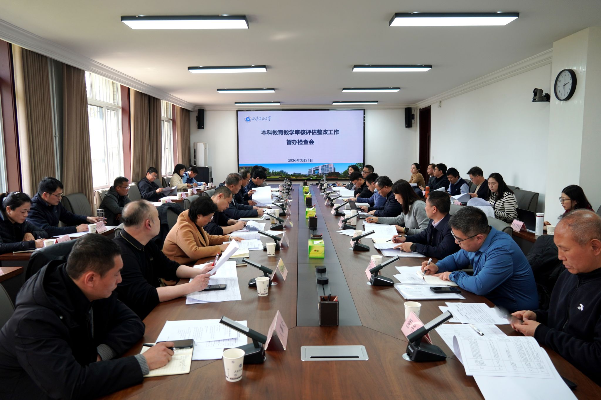 會(huì)上,高教研究與評(píng)估督導(dǎo)中心副主任申燕匯報(bào)了審核評(píng)估整改工作整體推進(jìn)情況及下一步工作安排。黨委辦公室(校長(zhǎng)辦公室)、黨委組織部、高教研究與評(píng)估督導(dǎo)中心主要負(fù)責(zé)人代表學(xué)校督辦組,依據(jù)《西安石油大學(xué)本科教育教學(xué)審核評(píng)估整改工作實(shí)施方案》(西石大高〔2024〕237號(hào)),對(duì)人事處、教務(wù)處、財(cái)務(wù)處等6家主辦單位的整改支撐材料進(jìn)行現(xiàn)場(chǎng)檢查與質(zhì)詢,逐條核查進(jìn)展成效,現(xiàn)場(chǎng)反饋各主辦單位整改進(jìn)度、問(wèn)題及改進(jìn)建議。發(fā)展規(guī)劃處等6家組長(zhǎng)單位分別匯報(bào)2026年第一季度整改推進(jìn)情況、《審核評(píng)估整改總結(jié)報(bào)告》整改任務(wù)跨部門合并凝練及撰寫情況。下一步,學(xué)校將持續(xù)強(qiáng)化督導(dǎo)檢查,倒排工期、閉環(huán)推進(jìn),確保整改工作各項(xiàng)舉措落地見(jiàn)效。