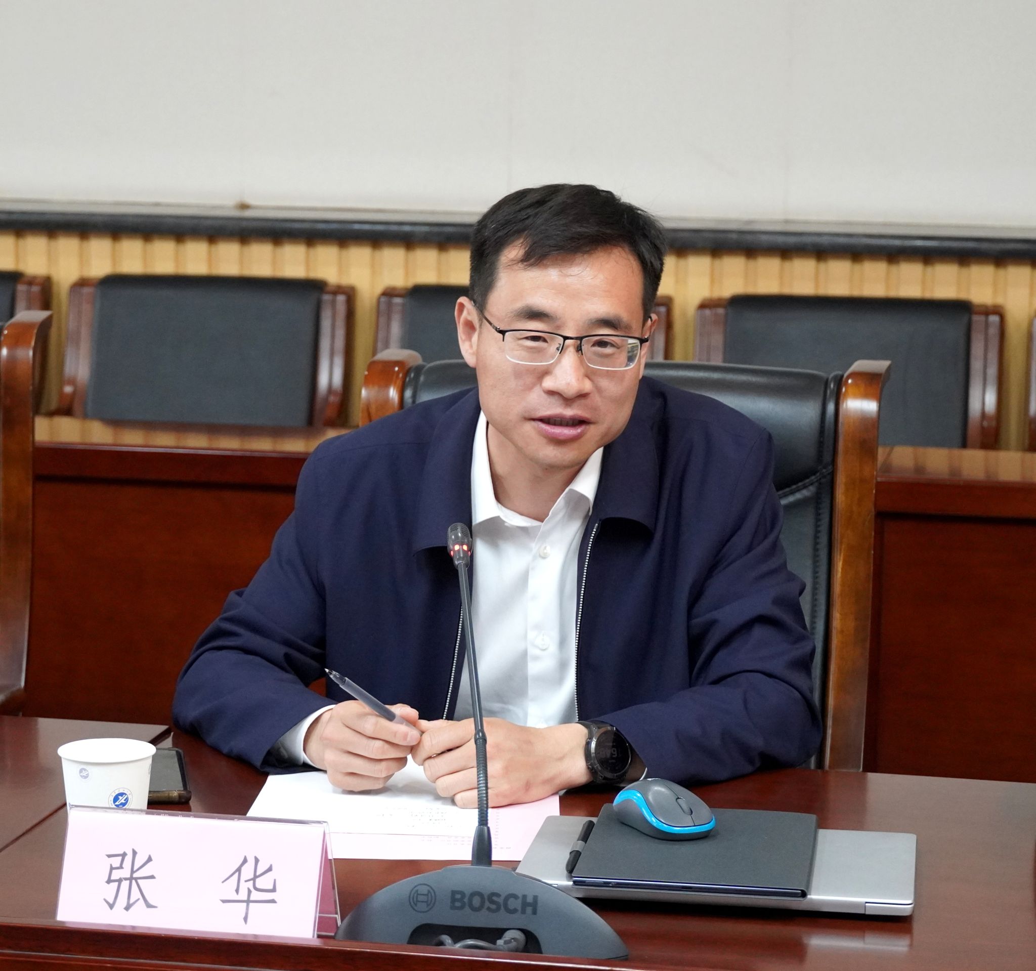 張華在交流中介紹了協會的整體情況、主要活動及行業(yè)相關政策。他表示,協會作為特種設備行業(yè)的重要橋梁紐帶,致力于推動行業(yè)技術進步、標準建設、人才培養(yǎng)和資源共享。他對我校在油氣儲運、腐蝕與防護、智能檢測等方面的特色科研成果給予高度認可,認為雙方在技術研發(fā)、成果轉化、平臺共建等方面有很多結合點。他期待未來雙方進一步加強合作,協會將積極發(fā)揮平臺作用,推動會員單位與學校在科研協同、技術交流、人才引育等方面開展務實合作,共同助力特種設備行業(yè)高質量發(fā)展。