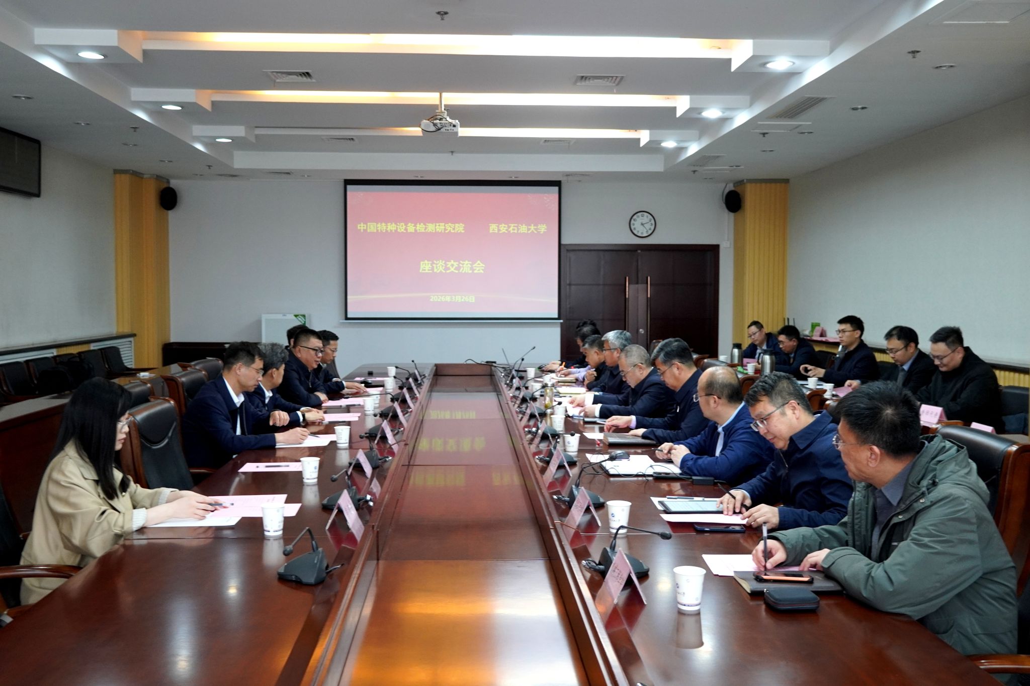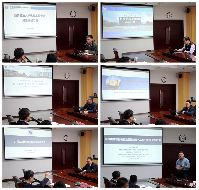 在交流環(huán)節(jié),中國特種設備檢測研究院介紹了科研情況及合作需求,我校相關學院和科研團隊代表介紹了在油氣儲運安全、材料腐蝕與防護、智能檢測技術等方面的特色科研成果。雙方與會人員圍繞科研協同攻關、關鍵核心技術突破、聯合申報科研項目、共建科研平臺、人才聯合培養(yǎng)等方面進行了深入交流與務實探討。大家一致認為,雙方科研方向高度契合,資源優(yōu)勢互補,合作潛力巨大,此次交流為雙方深化科研合作、實現協同創(chuàng)新奠定了堅實基礎。