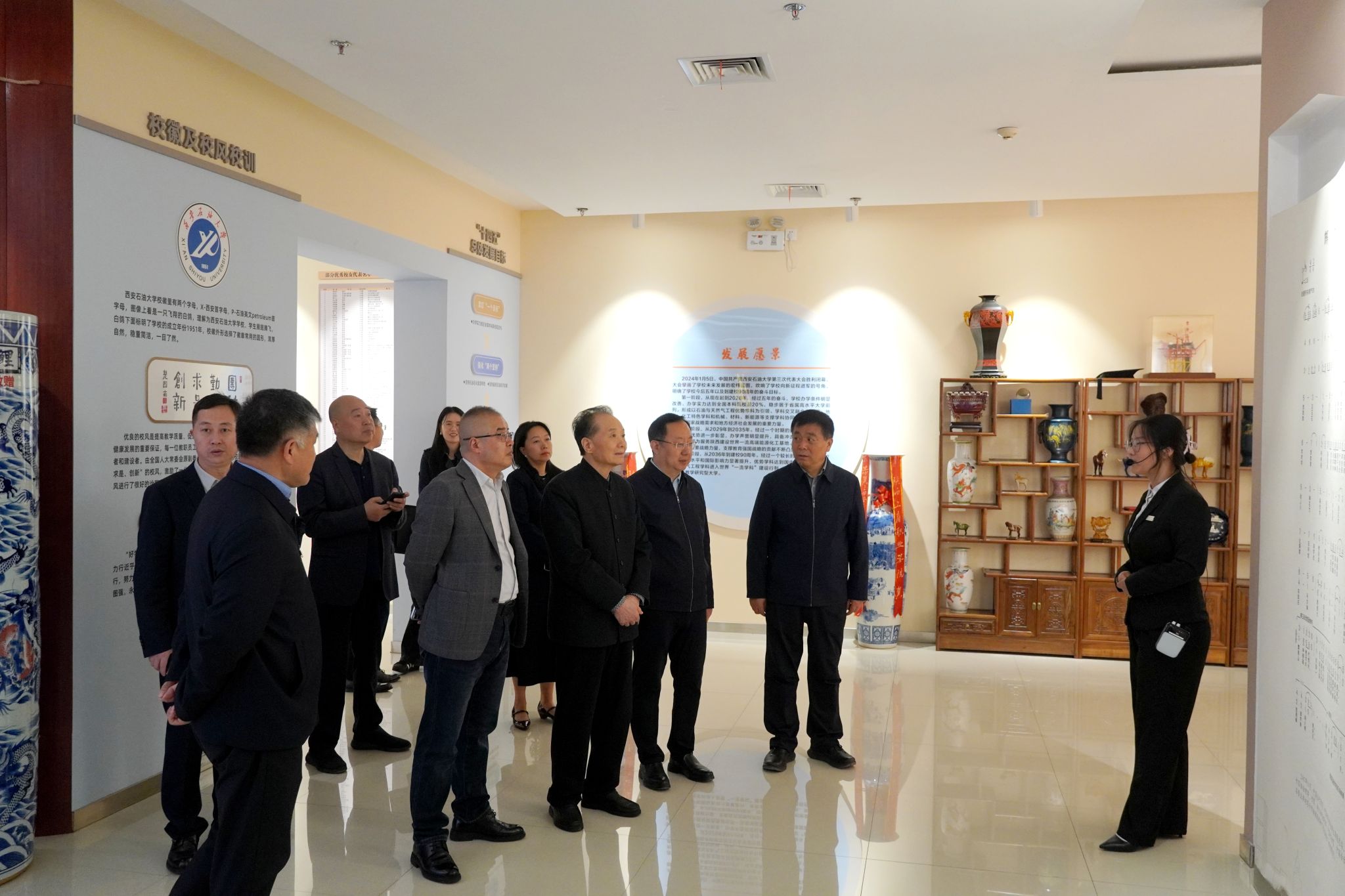 會前,劉浩春一行在種宇宏陪同下,參觀了學(xué)校鐵人王進(jìn)喜紀(jì)念館與校史館,實(shí)地感受學(xué)校的辦學(xué)底蘊(yùn)、文化建設(shè)成果與鐵人精神育人氛圍。