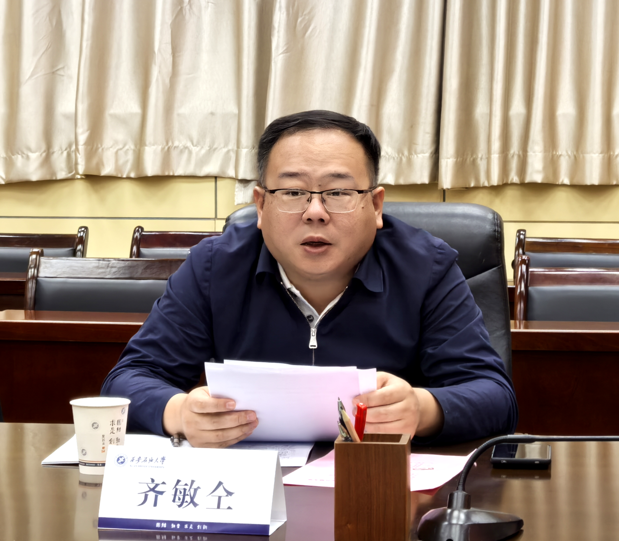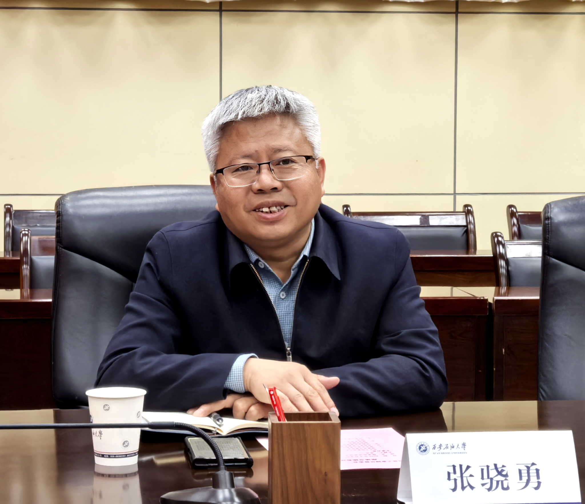 張驍勇代表學校對齊敏仝一行的到來表示熱烈歡迎,并簡要介紹了學校的發(fā)展歷程、學科建設、科研創(chuàng)新等方面的情況。他表示,我校作為西北地區(qū)唯一一所以石油石化為特色的高校,始終堅持以服務國家能源戰(zhàn)略和區(qū)域經濟社會發(fā)展為己任。近年來,學校在油氣勘探開發(fā)、綠色低碳技術、新能源材料、化工安全等領域形成了一批具有自主知識產權的特色成果。他指出,吳起縣是陜北能源化工基地的重要組成部分,產業(yè)基礎扎實,發(fā)展?jié)摿薮?。學校高度重視與地方政府的合作,愿以此次座談為契機,充分發(fā)揮學科、人才和科研優(yōu)勢,精準對接吳起縣產業(yè)需求,在技術攻關、平臺共建、成果轉化、人才培訓等方面開展實質性合作,助力吳起縣能源化工產業(yè)轉型升級和高質量發(fā)展。