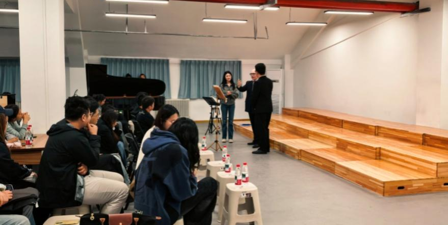公開課環(huán)節(jié),德國男高音歌唱家施萊格與藝術指導鮑姆在音樂系合唱教室,與我校師生面對面交流聲樂技巧,分享德奧藝術歌曲的演繹風格,現(xiàn)場互動氛圍熱烈。
