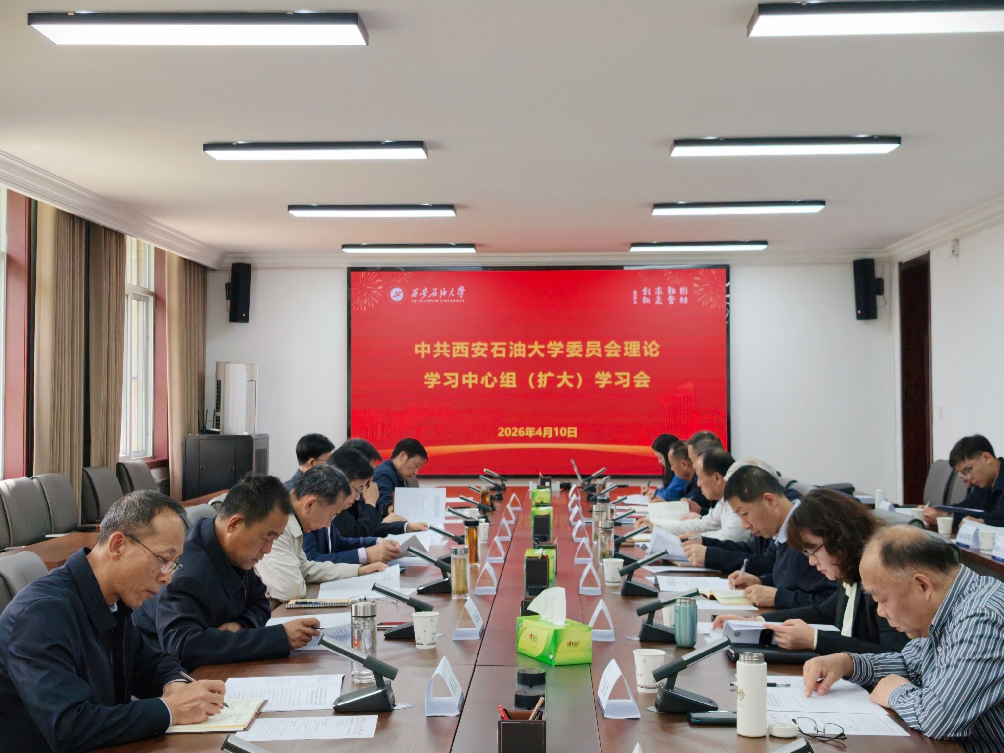 4月10日下午,校黨委理論學(xué)習(xí)中心組(擴(kuò)大)2026年第4次學(xué)習(xí)會在鄠邑校區(qū)第三會議室召開,深入學(xué)習(xí)領(lǐng)會習(xí)近平總書記給四所交通大學(xué)全體師生重要回信精神等內(nèi)容。會議邀請我校石油工程專業(yè)校友、青海油田公司原首席技術(shù)專家李江濤作專題報(bào)告。校黨委副書記、校長王進(jìn)富主持會議并講話。校黨委理論學(xué)習(xí)中心組成員,人事處、石油工程學(xué)院、地球科學(xué)與工程學(xué)院相關(guān)負(fù)責(zé)人參加會議。