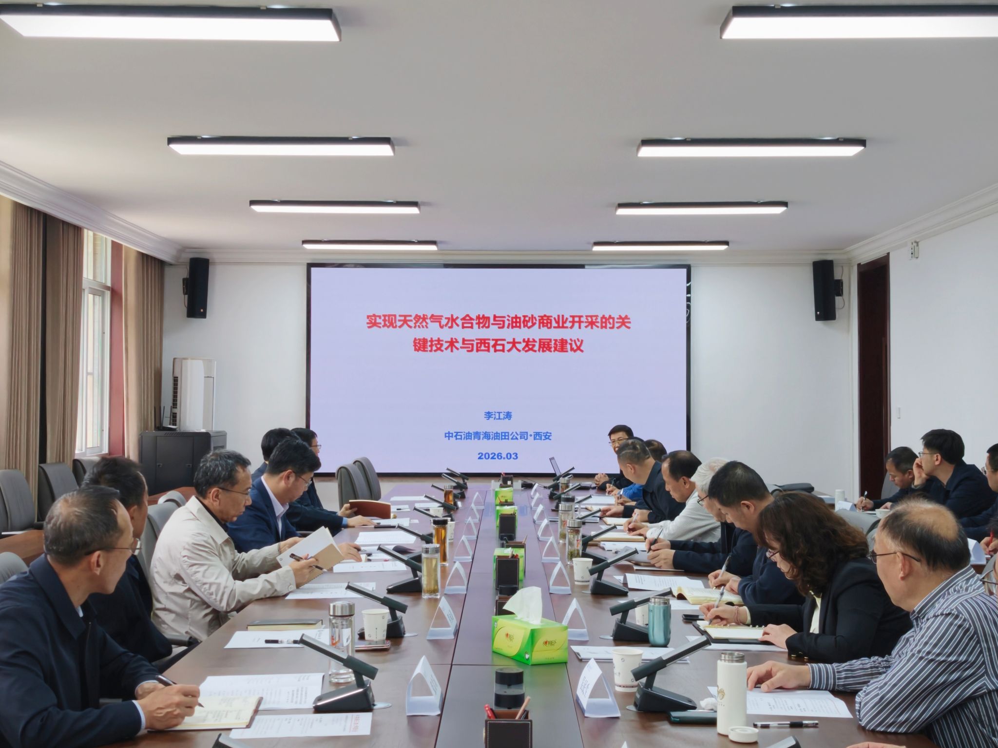 會上,李江濤以《實(shí)現(xiàn)天然氣水合物與油砂商業(yè)開采的關(guān)鍵技術(shù)與西石大發(fā)展建議》為題作專題報(bào)告。報(bào)告立足國家能源戰(zhàn)略,系統(tǒng)梳理了凍土帶可燃冰、地表油砂開采的技術(shù)挑戰(zhàn)與創(chuàng)新路徑,結(jié)合青海油田實(shí)踐,提出了天然氣水合物開采的借鑒思路并對油砂開采技術(shù)進(jìn)行了展望。圍繞學(xué)校發(fā)展,李江濤提出了深耕油氣、布局儲能與稀土、發(fā)展能源人工智能、發(fā)揮歐亞陸港區(qū)位優(yōu)勢、建設(shè)能源儲換節(jié)研發(fā)基地等五條戰(zhàn)略建議,并對學(xué)校學(xué)科發(fā)展及重點(diǎn)實(shí)驗(yàn)室建設(shè)提出了建設(shè)性意見。整場報(bào)告既有宏觀視野下的技術(shù)展望,又有貼近實(shí)際的學(xué)科發(fā)展思考,飽含對母校的深厚情感與殷切期望,對學(xué)校進(jìn)一步明確科研方向、強(qiáng)化特色優(yōu)勢、服務(wù)國家能源安全具有重要指導(dǎo)意義。