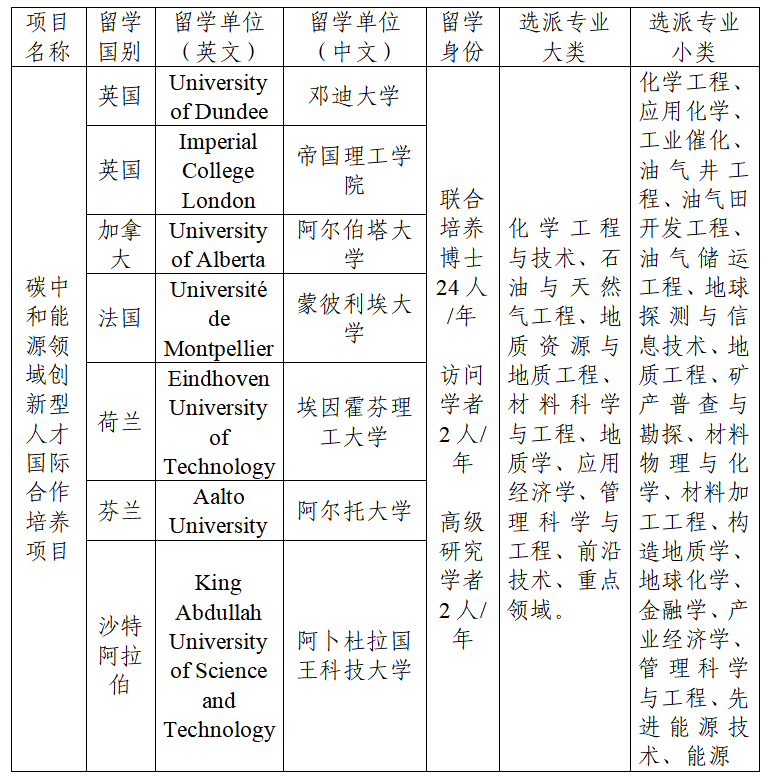 我校作為能源高校協(xié)作組成員單位參與了國(guó)家留學(xué)基金管理委員會(huì)2023年“創(chuàng)新型人才國(guó)際合作培養(yǎng)項(xiàng)目”—“碳中和能源領(lǐng)域創(chuàng)新型人才國(guó)際合作培養(yǎng)項(xiàng)目”, 2023年第一批次共成功推薦并獲國(guó)家留學(xué)基金委錄取9名人員,其中7名聯(lián)合培養(yǎng)博士研究生,2名訪(fǎng)問(wèn)學(xué)者。根據(jù)《2023年創(chuàng)新型人才國(guó)際合作培養(yǎng)項(xiàng)目實(shí)施辦法》(以下簡(jiǎn)稱(chēng)“創(chuàng)新項(xiàng)目”)(https://www.csc.edu.cn/article/2352)的要求,現(xiàn)將項(xiàng)目第二批人員申報(bào)事宜通知如下: