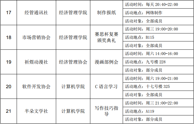 西安石油大學(xué)2016—2017學(xué)年第二學(xué)期第十六周社團(tuán)活動一覽表