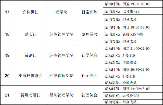 西安石油大學(xué)2016—2017學(xué)年第二學(xué)期第四周社團活動一覽表
