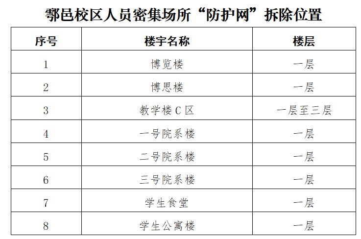 關(guān)于拆除雁塔、明德及鄠邑三校區(qū)人員密集場所“防護網(wǎng)”的通知