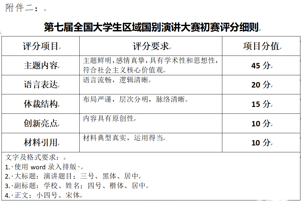 2025年8月20日18:00前,選手加入校選賽群后填寫參賽報名表,填寫完成后,將報名表、命題演講電子版演講稿、演講視頻、學(xué)生證掃描件一并打包,以壓縮包的形式發(fā)送至郵箱306639848@qq.com,提交后不可修改。郵件主題及壓縮包以“學(xué)校-學(xué)院-姓名”命名,壓縮包內(nèi)具體文件以“學(xué)校-學(xué)院-姓名-報名表/演講稿/學(xué)生證”命名。