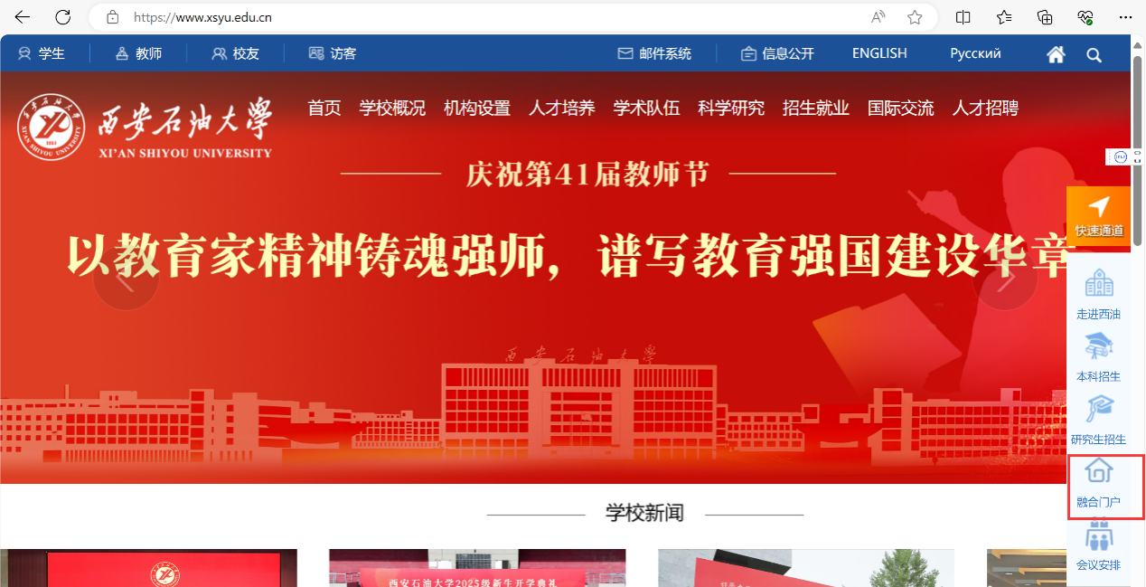 融合服務門戶打開方式:PC端:學校首頁-右邊欄-快速通道-融合門戶。
