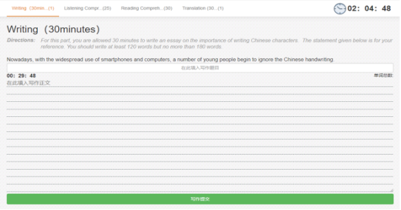 為扎實(shí)做好大學(xué)生英語(yǔ)四級(jí)考試備考工作,幫助我校學(xué)生熟悉四級(jí)考試流程和考試題型,調(diào)整學(xué)習(xí)狀態(tài),有效測(cè)試各題型掌握情況,查漏補(bǔ)缺,提升我校學(xué)生英語(yǔ)四級(jí)考試通過(guò)率和英語(yǔ)綜合能力,外國(guó)語(yǔ)學(xué)院于11月29日至12月3日和12月9-13日對(duì)學(xué)生分別進(jìn)行兩次線上四級(jí)模擬測(cè)試。為達(dá)到良好的模擬測(cè)試效果,此次模考使用批改網(wǎng)平臺(tái)進(jìn)行發(fā)布,外國(guó)語(yǔ)學(xué)院規(guī)劃考試安排、細(xì)化考試流程,??碱}型全面、來(lái)源權(quán)威,具有重要的模擬價(jià)值。