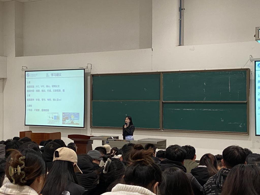 隨后,接葉楠同學(xué)從個人成績、學(xué)術(shù)成果、科研項目和綜合能力以及學(xué)習(xí)建議五個方面進行經(jīng)歷和經(jīng)驗分享,強調(diào)要端正學(xué)習(xí)態(tài)度,樹立正確的學(xué)習(xí)規(guī)劃,不僅要專注于學(xué)習(xí)專業(yè)課程,還要積極參加各種學(xué)科比賽,在比賽中不斷開拓視野,積累經(jīng)驗,在競爭中成長,激發(fā)潛力。她還建議同學(xué)們在論文的發(fā)表過程中,要從讀、寫、精煉三個方向去下功夫。劉勇同學(xué)從課程學(xué)習(xí)、科研競賽和社會實踐三個方面分享了獲得國獎的經(jīng)驗。他談到,課程學(xué)習(xí)是重中之重,是從事科學(xué)研究的基礎(chǔ),千萬不要掛科。他還號召同學(xué)們積極參加石工、儲運和海工大賽,搭建良好的團隊,敢于創(chuàng)新。