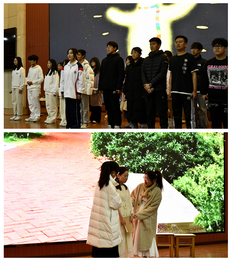 本屆大賽經(jīng)過學院推薦、心理中心初賽選拔等階段,歷時近一個月,最終10個劇目脫穎而出進入決賽。各參賽隊伍在比賽中的表演精彩紛呈、可圈可點。主題涉及自我認同、人際關系、情緒情感和原生家庭等,將大學生們的內(nèi)心世界通過情景演繹的方式娓娓道來。人文學院的情景劇《被今天困住的我》引導同學擺脫內(nèi)心壓力,明白懂事不是無底線犧牲自我;計算機學院的情景劇《撕開迷霧》刻畫了深受網(wǎng)絡暴力、日漸消沉的少女在同學和老師的開導下,重新認識自己,感受到來自朋輩互助的溫暖故事;外國語學院的情景劇《與焦慮和解Be Yourself》和人文學院白鹿原話劇社的情景劇《眾口難跳》共同探討了大學生目前面臨的種種焦慮,在親友的幫助下,直面焦慮,成為更好的自己;土木工程學院的情景劇《團體的溫暖照亮孤獨的心靈》講述了大學生在生活中面對各自問題和困惑時相互支持、理解和成長的過程;音樂系的情景劇《成長的岔路口—與妒忌和解》形式新穎,將學生內(nèi)心的變化與專業(yè)特長結(jié)合起來,用歌聲與樂曲展現(xiàn)了大學生正確的戀愛觀;經(jīng)濟管理學院的情景劇《生而有翼》講述了主人公缺乏自信,陷入精神內(nèi)耗中,在成長歷練找回自信、認識到自己原本就是一道光的故事;材料科學與工程學院的情景劇《提線木偶》展現(xiàn)了討好型人格踏上自我探索和自我救贖的心路歷程;電子工程學院《“心”光》講述了一個內(nèi)心自卑的學生,在朋輩互助之下用友愛護航青春的故事;馬克思主義學院的情景劇《煥》引導學生遇到欺凌要勇于保護自己,尋求正確合理的方法解決問題;大學生心理協(xié)會出演的《你配得上世間所有美好》展現(xiàn)了勇敢說“不”、善于表達的成長故事。豐富的類型題材、緊湊的故事情節(jié)和豐滿的人物心理刻畫贏得現(xiàn)場掌聲陣陣。