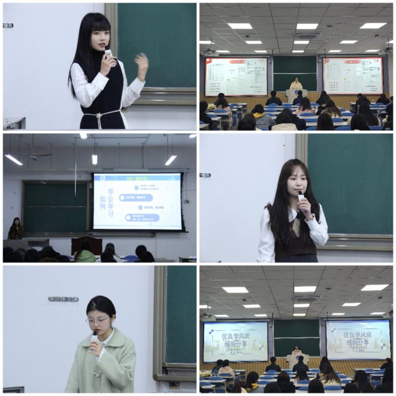 一是組建隊伍聚合力。經(jīng)濟(jì)管理學(xué)院著力打造“1+N”支先鋒隊伍,即1支優(yōu)秀班集體隊伍和“推免學(xué)生”、“國獎獲得者”、“優(yōu)秀學(xué)習(xí)標(biāo)兵”等N支先進(jìn)個人隊伍,不斷強(qiáng)化隊伍建設(shè),打磨先鋒事跡材料,總結(jié)優(yōu)秀集體、個人的先進(jìn)經(jīng)驗,形成可復(fù)制的經(jīng)驗,不斷樹立典型,強(qiáng)化榜樣引領(lǐng)作用。11月1日—2日在博覽樓教室舉辦了“經(jīng)驗共分享,交流促成長”國家獎學(xué)金、中石油獎學(xué)金獲得者經(jīng)驗交流會。國家獎學(xué)金獲得者董亦潔、鄭棋中,中石油獎學(xué)金獲得者高穎芝、晏瑞園、常笑笑結(jié)合個人學(xué)習(xí)經(jīng)驗,從專業(yè)課程學(xué)習(xí)、科學(xué)研究、學(xué)科競賽、實踐實習(xí)等方面為低年級同學(xué)答疑解惑。11月15日,在博思樓321教室舉辦推免學(xué)生經(jīng)驗交流分享會,2020級各專業(yè)推免生受邀分享經(jīng)驗,2021級、2022級學(xué)生代表200余人參加了交流分享會。推免同學(xué)結(jié)合自身推免經(jīng)歷,從保研政策、時間安排、目標(biāo)規(guī)劃、自我定位、專業(yè)選擇和研究生支教團(tuán)選拔條件等進(jìn)行了介紹,針對同學(xué)們普遍關(guān)心的如何平衡學(xué)業(yè)與工作、實踐、科研和競賽等方面的問題與參會同學(xué)進(jìn)行了深入的交流分享。11月15日,在博覽樓108智慧大講堂開展班級建設(shè)經(jīng)驗交流會,優(yōu)秀班集體代表人力2001班、人力2002班、商務(wù)2002班、智財2201班班干部代表分別就班級思想引領(lǐng)、文化建設(shè)、學(xué)風(fēng)建設(shè)等方面進(jìn)行經(jīng)驗分享,充分發(fā)揮朋輩引領(lǐng)和榜樣示范作用。二是專題培訓(xùn)提能力。大學(xué)英語四、六級考試是對大學(xué)生的英語能力進(jìn)行客觀、準(zhǔn)確測量的有效方式,在大學(xué)生專業(yè)學(xué)習(xí)、考研就業(yè)、出國留學(xué)等方面起到重要作用。學(xué)院將四六級通過率作為強(qiáng)學(xué)風(fēng)的重要抓手。自11月1日開始,每周三下午組織2022級、2023級學(xué)生開展英語四六級培訓(xùn),邀請外國語學(xué)院武絨老師專題講授四六級單詞積累、閱讀理解、備考技巧等專題課程,不斷提高學(xué)生英語聽說讀寫能力。11月22日,在博思樓205舉辦考研英語專題講座,為2024屆考研學(xué)生在英語作文的寫作、語料的準(zhǔn)備等方面進(jìn)行專題輔導(dǎo)。