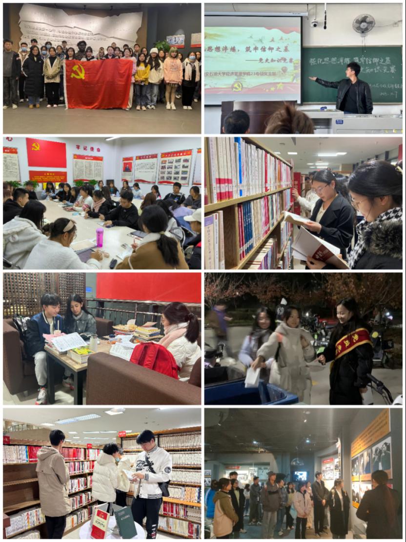 一是樹立形象當(dāng)先鋒。11月8日—12日,學(xué)院開展了黨員一對一幫扶活動,學(xué)生黨員干部積極幫助同學(xué)加強(qiáng)思想政治學(xué)習(xí),主動宣傳優(yōu)秀共產(chǎn)黨員的模范事跡,與幫扶學(xué)生談心談話,及時了解學(xué)生情況,在學(xué)習(xí)、工作和生活上有針對性地幫助和引導(dǎo)。二是學(xué)習(xí)思想明事理。11月17日,學(xué)院邀請學(xué)校鐵人研究中心首席專家郭崗彥老師,舉辦“感悟鐵人魅力,汲取成長力量”鐵人精神教育及課程思政專題講座。會議采用微信直播平臺,學(xué)院師生2000余人參加活動。講座的開展幫助學(xué)生對鐵人精神的內(nèi)涵有了更深層次的認(rèn)識和感悟,激發(fā)了學(xué)生愛國、愛黨的熱情和奮發(fā)有為的斗志,立志傳承紅色基因,爭做時代新人。11月9日—10日,學(xué)院組織各學(xué)生黨支部召開主題為“品讀紅色經(jīng)典,傳承紅色精神”的紅色經(jīng)典書目閱讀分享會活動,邀請各支部黨員代表分享日常生活中閱讀紅色經(jīng)典書目的感想感悟,以充分調(diào)動支部成員閱讀紅色經(jīng)典書目的積極性。11月8日—15日學(xué)院各學(xué)生黨支部開展“從鐵人精神中汲取青春奮進(jìn)力量”主題黨日活動,組織各支部成員前往鐵人館參觀學(xué)習(xí),重溫黨史憶初心,汲取力量共奮進(jìn)。三是亮明身份展風(fēng)采。學(xué)院組織學(xué)生黨員同志深入教學(xué)樓、圖書館了解學(xué)生學(xué)習(xí)情況,引導(dǎo)學(xué)生前排就坐、認(rèn)真聽講,養(yǎng)成良好的學(xué)習(xí)習(xí)慣等;深入學(xué)生公寓,對宿舍內(nèi)務(wù)進(jìn)行檢查,針對不同宿舍的情況分別幫助內(nèi)務(wù)整理;深入食堂、餐廳提醒同學(xué)們切勿浪費糧食,積極宣傳“一粥一飯,當(dāng)思來之不易”的勤儉節(jié)約思想。