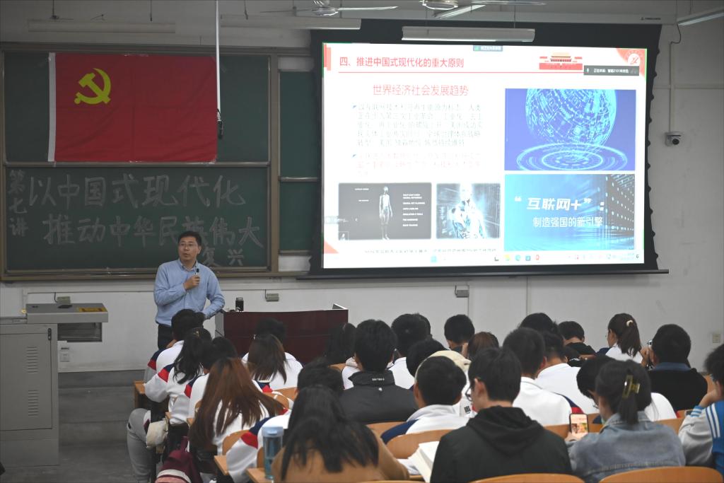 1121日晚,電子工程學(xué)院第24期入黨積極分子培訓(xùn)班第七講在鄠邑校區(qū)博思樓221教室順利進(jìn)行。本次黨課的主題為《以中國式現(xiàn)代化推動中華民族偉大復(fù)興》,由西安石油大學(xué)黨委學(xué)生工作部(處)部(處)長王亮老師擔(dān)任主講,我院202名入黨積極分子參加了此次黨課。