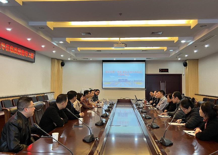 劉勝勇代表醫(yī)院對西安市第一醫(yī)院高新院區(qū)一行的來訪表示歡迎,并從兩校區(qū)醫(yī)院建設(shè)、公共衛(wèi)生、醫(yī)療服務(wù)能力、發(fā)展規(guī)劃等工作方面作了詳細(xì)的介紹并表示,西安石油大學(xué)醫(yī)院一直致力于積極提升服務(wù)師生基本醫(yī)療保障能力水平建設(shè),希望通過深度合作,充分利用西安市第一醫(yī)院高新院區(qū)三級甲等優(yōu)質(zhì)醫(yī)療資源優(yōu)勢輻射效應(yīng),為我校醫(yī)院提供更多的業(yè)務(wù)指導(dǎo)和幫助,通過建立綠色通道、業(yè)務(wù)能力培訓(xùn)、健康宣教等全方位多層次的交流合作,積極為我校師生提供更加便捷的就醫(yī)服務(wù)。