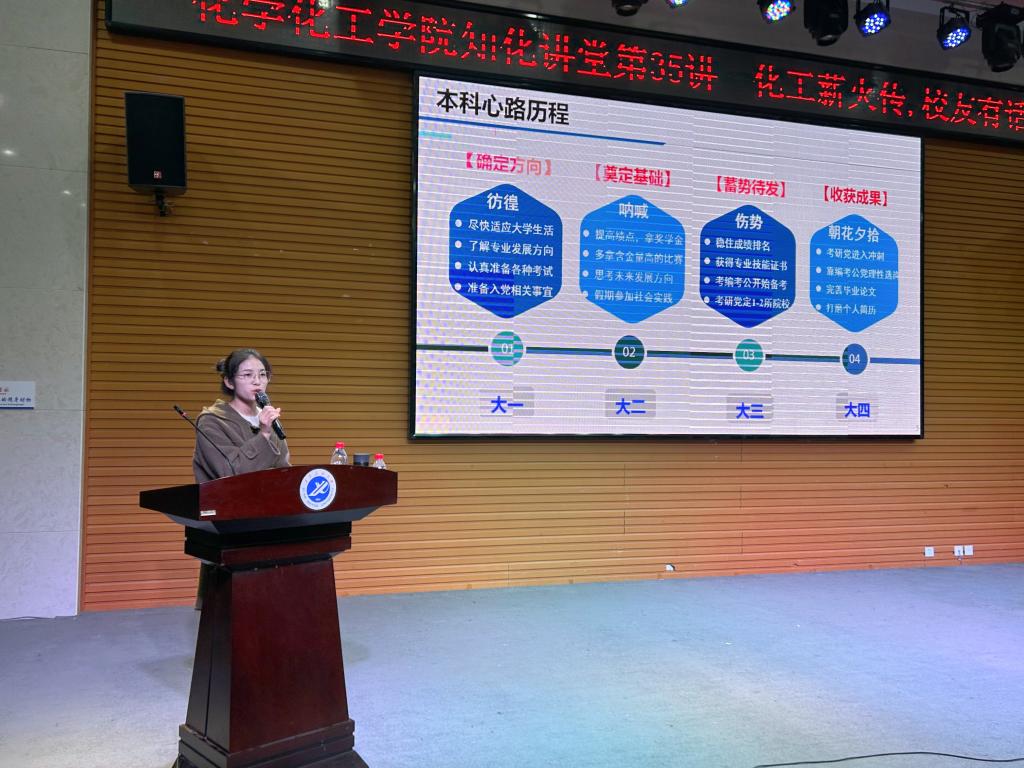 為更好的幫助學(xué)生提升專業(yè)學(xué)習(xí)能力,引導(dǎo)學(xué)生做好學(xué)業(yè)規(guī)劃,11月15日下午,化學(xué)化工學(xué)院在鄠邑校區(qū)經(jīng)管人文樓118室舉辦“化工薪火傳,校友有話說”知化講堂第35講。本次講座特別邀請(qǐng)2016級(jí)優(yōu)秀畢業(yè)生丁蕊同學(xué)擔(dān)任主講,學(xué)院200余名本科生及2023級(jí)全體研究生參會(huì)?;顒?dòng)由2023級(jí)研究生輔導(dǎo)員王蓉主持。