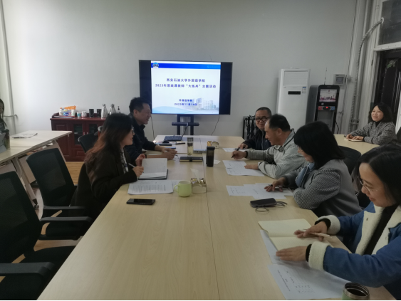 為認(rèn)真貫徹落實(shí)習(xí)近平總書記關(guān)于學(xué)校思想政治理論課的重要論述,按照《中共陜西省委辦公廳關(guān)于印發(fā)〈全國“大思政課”綜合改革試驗(yàn)區(qū)陜西省實(shí)施方案〉的通知》(陜辦字〔2023〕54號(hào))精神,加強(qiáng)高素質(zhì)、創(chuàng)新型教師隊(duì)伍建設(shè),深化課程育人質(zhì)量改革,外國語學(xué)院于11月14日下午在華油能源樓727舉辦了課程思政“大練兵”講課比賽,學(xué)院黨委書記田虹霞、副院長陳武、大學(xué)外語教學(xué)一部主任李雪梅、大學(xué)外語教學(xué)二部主任彭健、英語系主任鐘澤波、翻譯系副主任秦艷霞參加了本次主題活動(dòng)。本次比賽由陳武副院長主持。
