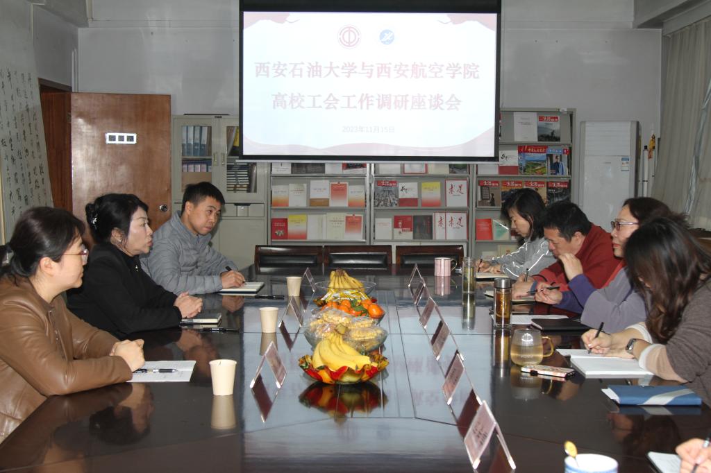 會(huì)上,袁玎對(duì)西安航空學(xué)院工會(huì)一行的到來表示熱烈歡迎,并對(duì)學(xué)校工會(huì)工作的總體情況和教代會(huì)工作、校園文化建設(shè)、服務(wù)教職工以及鄉(xiāng)村振興工作的開展情況進(jìn)行了介紹。雙方還針對(duì)教代會(huì)提案工作、教職工協(xié)會(huì)管理建設(shè)、福利采購(gòu)發(fā)放形式、維護(hù)女職工權(quán)益、工會(huì)經(jīng)費(fèi)的劃撥以及資源共享“結(jié)對(duì)共建”等內(nèi)容進(jìn)行了深入交流探討。