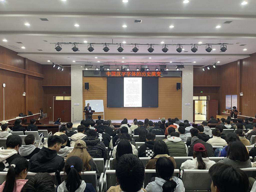 漢字是世界上現(xiàn)存最古老的文字,傳承漢字文化首先要對漢字的起源與發(fā)展進行歷史追溯。從商朝的甲骨文,到周朝的金文,再到秦朝的小篆,漢代的隸書,魏晉的楷書,以及東漢的草書與行書,每個階段都蘊含了深厚的歷史文化底蘊。為了幫助同學們更加了解中華文明的發(fā)展歷程,增強文化自信和民族自豪感,同時培養(yǎng)審美能力和藝術鑒賞能力,人文學院于11月10日下午在鄠邑校區(qū)崇文樓就業(yè)指導中心多功能廳開展“人文大講堂之專家學者進校園”系列講座——《中國漢字字體的歷史演變》及《中國大篆書法欣賞與實踐》。講座主講人分別為中國大篆文化研究院院長、竇體大篆書法家中國大篆文化傳承人竇德盛老師和文化學者、軍旅書法家,中國大篆文化研究院副院長,中國硬筆書法協(xié)會高級書法教師,“國禮藝術家”劉博老師。講座由人文學院黨委書記余小勇主持、各年級輔導員出席、人文學院與計算機學院學生參加。