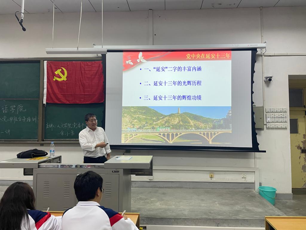 2023年11月2日晚,外國(guó)語(yǔ)學(xué)院在博覽樓234教室舉行第十二期入黨積極分子培訓(xùn)班第二講。人文學(xué)院黨委書記余小勇?lián)沃髦v,黨課主題為《黨中央在延安十三年》,外國(guó)語(yǔ)學(xué)院196名入黨積極分子參加了此次黨課學(xué)習(xí)。