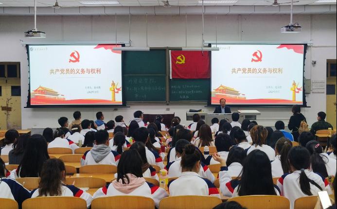 趙承勝以“共產(chǎn)黨員的義務(wù)與權(quán)利”為題,從“規(guī)定黨員義務(wù)和權(quán)利的意義”“黨員的義務(wù)”“黨員的權(quán)利”“義務(wù)和權(quán)利的辯證關(guān)系”四個方面展開授課,詳細講解了黨員“學(xué)習(xí)、實干、奉獻、守紀、組織、治黨、宗旨、道德”八個方面的義務(wù)及“政治、參政、議政、監(jiān)督、選舉、申辯、上訴、申訴”八個方面的權(quán)力,并結(jié)合黨章、黨規(guī)、黨紀和相關(guān)規(guī)定,以及自身多年的黨務(wù)工作經(jīng)驗和豐富案例,解讀作為一名合格的黨員應(yīng)該如何履行自己的義務(wù)和權(quán)利。他強調(diào),作為一名入黨積極分子,要加強政治理論學(xué)習(xí),用馬克思主義中國化的理論成果武裝頭腦,深刻把握習(xí)近平新時代中國特色社會主義思想的核心要義。要在日常學(xué)習(xí)生活中,嚴格對照黨員標準,充分發(fā)揮先鋒模范作用,吃苦在前,艱苦奮斗。要自覺遵守黨的紀律、法律法規(guī)、校規(guī)校紀,服從組織安排,積極完成各項任務(wù)。