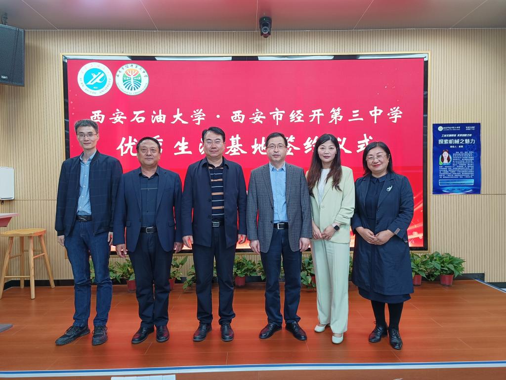 為進(jìn)一步加強我校與重點中學(xué)的溝通交流,擴(kuò)大我校招生影響力。10月30日,西安石油大學(xué)優(yōu)質(zhì)生源基地簽約授牌儀式在西安市經(jīng)開第三中學(xué)舉行。機械工程學(xué)院黨委書記蔡建文,機械工程學(xué)院副院長崔璐,教務(wù)處招生辦公室主任屈敏佳,經(jīng)開三中執(zhí)行校長鄭宏寶,經(jīng)開三中副書記、副校長朱旭亮,經(jīng)開三中學(xué)生處主任敖宏銘參加儀式。儀式由經(jīng)開三中副書記、副校長朱旭亮主持。