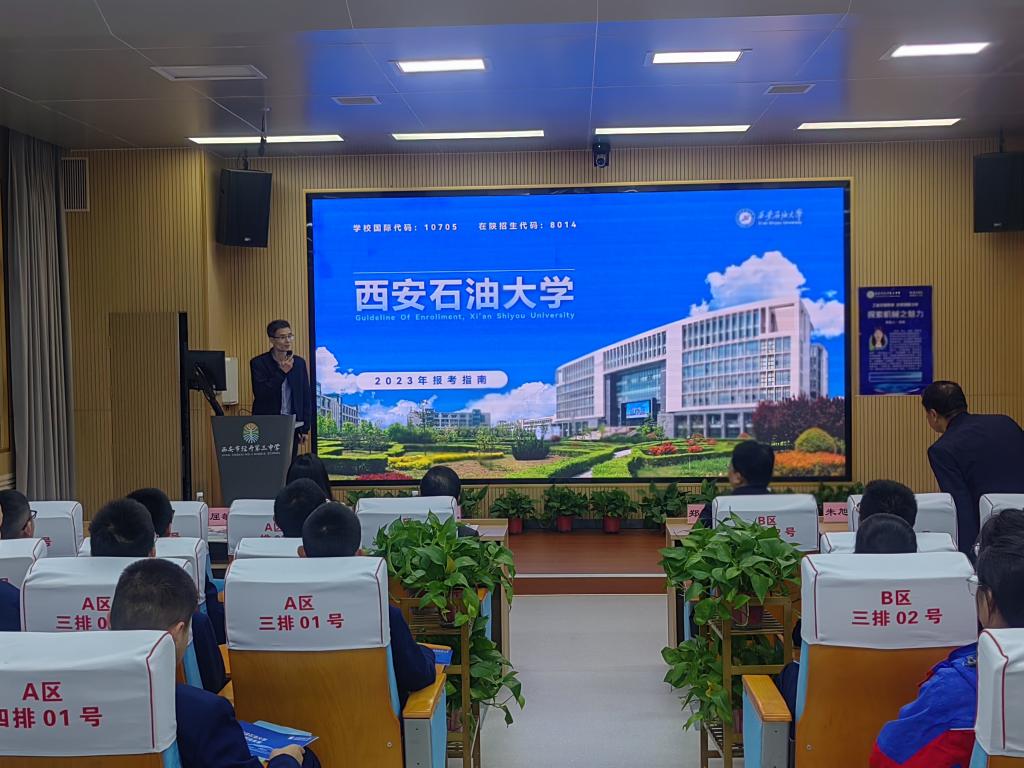 教務(wù)處招生辦公室主任屈敏佳介紹了西安石油大學(xué)招生概況和政策,增強了經(jīng)開三中師生對西安石油大學(xué)的了解,起到了良好的促進(jìn)作用。
