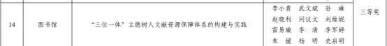 日前,學(xué)校第九屆校園文化建設(shè)優(yōu)秀成果評選結(jié)果揭曉,圖書館再獲佳績?!丁?span lang="EN-US">1+2+3+4+N”閱讀推廣文化育人體系的構(gòu)建與實(shí)踐》成果榮獲創(chuàng)新獎,《中華傳統(tǒng)文化閱讀推廣的育人創(chuàng)新實(shí)踐》成果榮獲二等獎,《“三位一體”立德樹人文獻(xiàn)資源保障體系的構(gòu)建與實(shí)踐》成果榮獲三等獎,圖書館還被授予了“優(yōu)秀組織獎”。