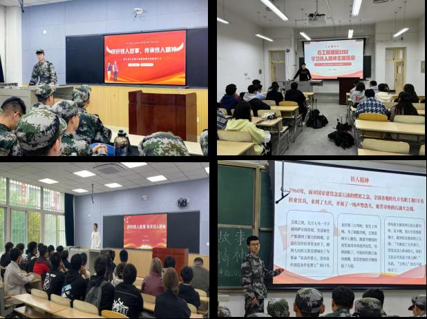 主題班會(huì)育鐵人。學(xué)院組織各年級(jí)各班級(jí)團(tuán)支部通過朗誦、演講、電影、交流研討、分組發(fā)言等各種形式開展學(xué)習(xí)鐵人精神暨鐵人誕辰100周年紀(jì)念主題班團(tuán)會(huì)。班會(huì)上,同學(xué)們以鐵人精神為主線,結(jié)合自身實(shí)際,分別從個(gè)人、集體、思想建設(shè)、學(xué)風(fēng)建設(shè)、團(tuán)結(jié)協(xié)作等方面分享了心靈感悟以及下一步努力方向。班委們向同學(xué)們介紹了王進(jìn)喜同志的生平事跡,結(jié)合自身談了自己對鐵人精神的理解和感悟,并號(hào)召大家向鐵人學(xué)習(xí),打造鐵人式班集體,爭做新時(shí)代鐵人式大學(xué)生,在任何困難和挫折面前,都要保持堅(jiān)定的信念和不屈不撓的斗志,并將鐵人精神融入到自己的學(xué)習(xí)和生活中,堅(jiān)持奮斗、勇往直前,為實(shí)現(xiàn)個(gè)人的理想和國家的繁榮貢獻(xiàn)力量。同學(xué)們紛紛表示要刻苦努力,發(fā)揚(yáng)鐵人精神,真正將鐵人精神融入班級(jí)建設(shè)和個(gè)人日常學(xué)習(xí)生活中。