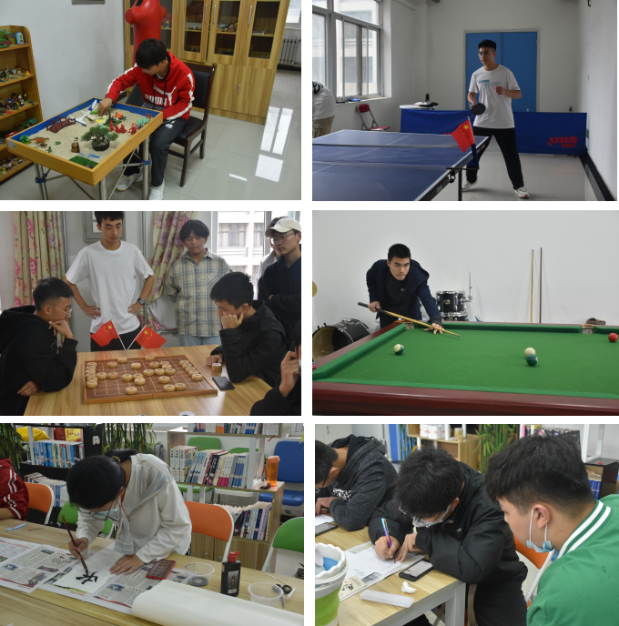 10月2日至10月6日,學(xué)院組織留校學(xué)生進(jìn)行了乒乓球比賽、臺(tái)球比賽、硬筆書法大賽、象棋比賽、五子棋比賽、模擬沙盤等文體活動(dòng)。通過各種比賽,讓更多同學(xué)走出宿舍、走進(jìn)操場(chǎng),增強(qiáng)體育鍛煉和團(tuán)隊(duì)協(xié)作意識(shí),增進(jìn)師生之間的交流和各民族同學(xué)之間的友誼,營(yíng)造了歡樂溫馨、積極向上的雙節(jié)氛圍。