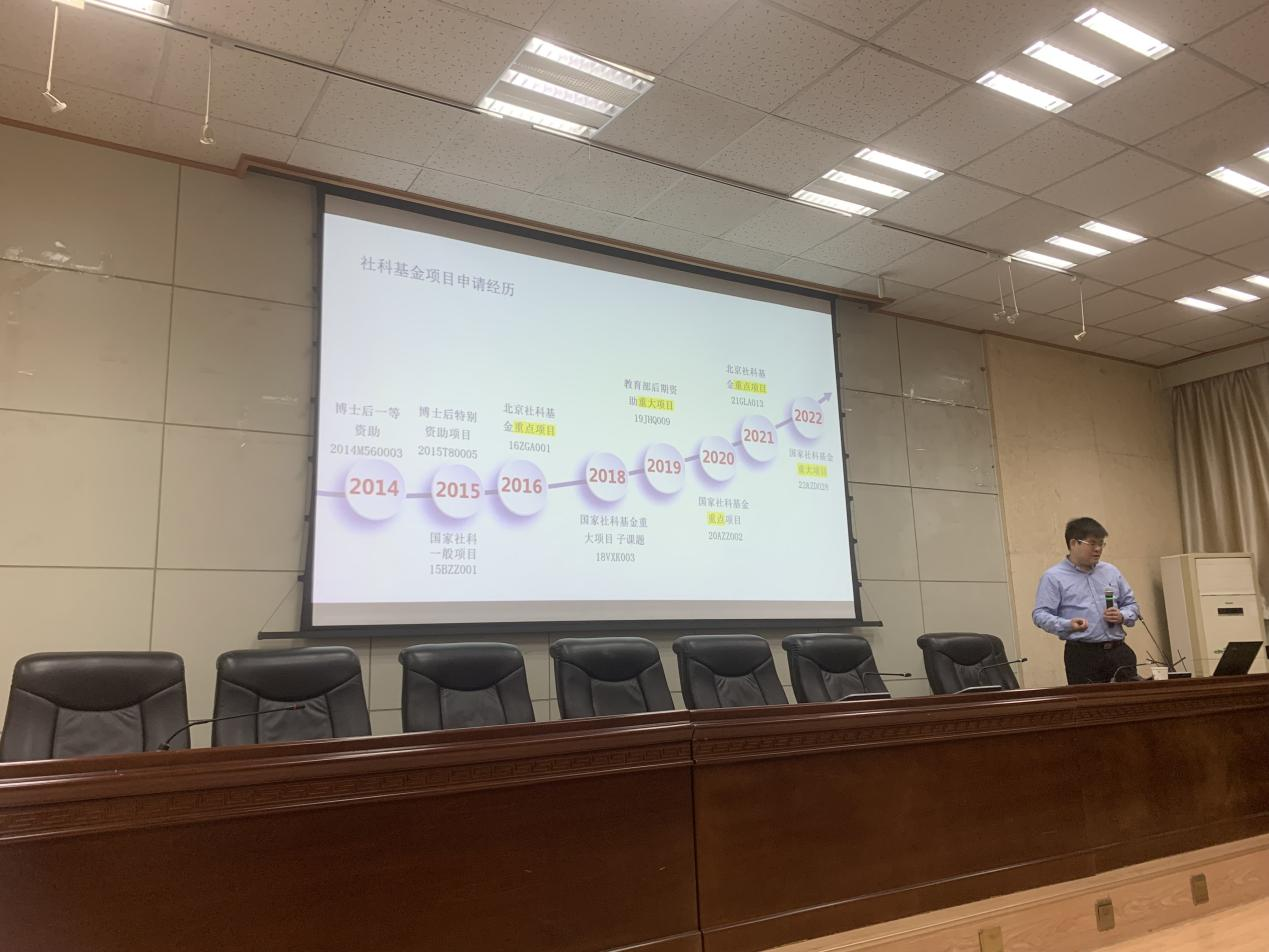 報(bào)告中,臧雷振教授結(jié)合自己申請(qǐng)國(guó)家社科基金項(xiàng)目的心得與感悟,對(duì)國(guó)家社科基金的立項(xiàng)狀況、主題分布、發(fā)展態(tài)勢(shì)進(jìn)行分析,從選題依據(jù)、思路方法、創(chuàng)新之處、學(xué)術(shù)價(jià)值、重點(diǎn)難點(diǎn)、研究基礎(chǔ)、參考文獻(xiàn)等逐條進(jìn)行了經(jīng)驗(yàn)介紹和心得分享。他認(rèn)為,國(guó)家社科基金申報(bào)應(yīng)聚焦課題指南,堅(jiān)持以重大理論和現(xiàn)實(shí)問(wèn)題為主攻方向,推動(dòng)學(xué)科體系、學(xué)術(shù)體系、話語(yǔ)體系建設(shè)。報(bào)告后,臧雷振教授與老師們圍繞申報(bào)中的具體問(wèn)題進(jìn)行了互動(dòng)交流,并對(duì)部分老師的申報(bào)書(shū)從選題精細(xì)度、研究團(tuán)隊(duì)組建和研究框架布局等方面進(jìn)行了詳細(xì)的分析與指導(dǎo)。