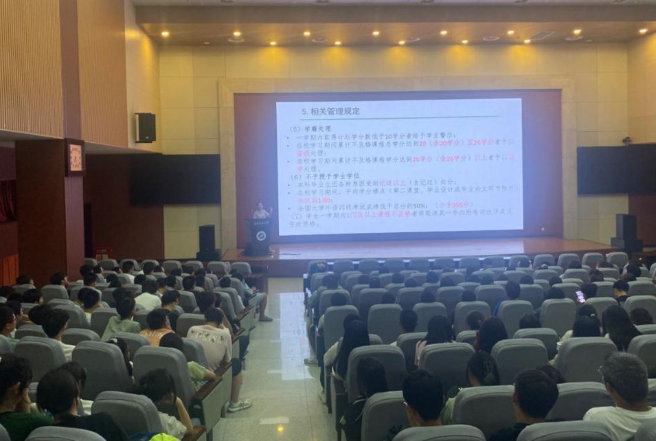 為促進(jìn)2023級(jí)新生更快適應(yīng)大學(xué)生活、制定合理目標(biāo),進(jìn)一步加強(qiáng)學(xué)生日常教育管理,學(xué)院召開(kāi)2023級(jí)新生年級(jí)大會(huì),學(xué)生工作辦公室主任郭媛從“大學(xué)是什么”“大學(xué)的特點(diǎn)和意義”“大學(xué)規(guī)劃”“大學(xué)日常行為規(guī)范”四個(gè)方面向新生介紹了到大學(xué)之后應(yīng)及時(shí)轉(zhuǎn)變身份和習(xí)慣,盡快適應(yīng)大學(xué)生活,提前做好大學(xué)規(guī)劃,度過(guò)充實(shí)圓滿的大學(xué)生活。最后,郭老師帶領(lǐng)全體新生學(xué)習(xí)了《學(xué)生手冊(cè)》,針對(duì)學(xué)籍管理規(guī)定、公寓管理辦法、獎(jiǎng)助學(xué)金評(píng)定、學(xué)生在校期間的權(quán)利和義務(wù)、違紀(jì)處分辦法等有關(guān)學(xué)生切身利益的部分做了詳細(xì)解讀。