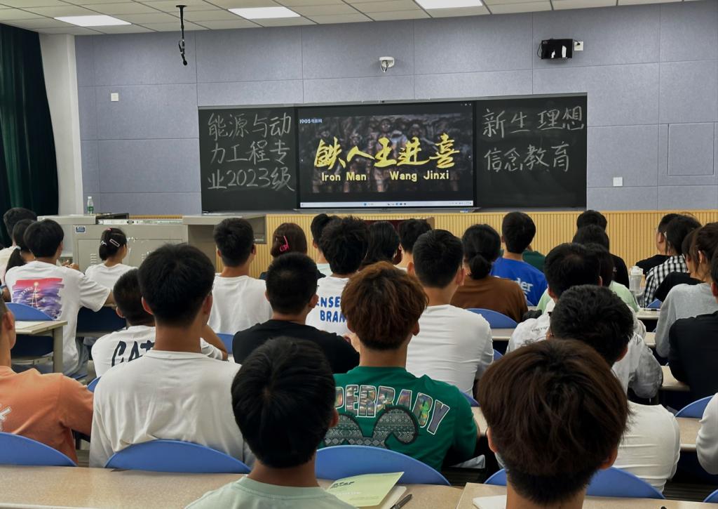 為加強青少年理想信念教育,厚植愛國主義情懷,補足思想精神之鈣,9月9日上午10時,學(xué)院全體新生分別在鄠邑校區(qū)A201、A203、A205、A207教室集中觀看了《鐵人王進喜》電影。通過觀影活動,使新生深刻感悟了“為國分憂、為民族爭氣”的愛國主義精神,“寧可少活20年,拼命也要拿下大油田”的忘我拼搏精神,“有條件要上,沒有條件創(chuàng)造條件也要上”的艱苦奮斗精神,“干工作要經(jīng)得起子孫萬代檢查”“為革命練一身硬功夫、真本事”的科學(xué)求實精神,“甘愿為黨和人民當(dāng)一輩子老黃牛”,埋頭苦干的奉獻精神。觀影結(jié)束后,各專業(yè)進行了形式多樣的觀影分享,同學(xué)們紛紛表示在今后的學(xué)習(xí)和生活中一定認真踐行王進喜同志崇高的思想和優(yōu)秀的品德,為國家和社會的發(fā)展貢獻青春力量。