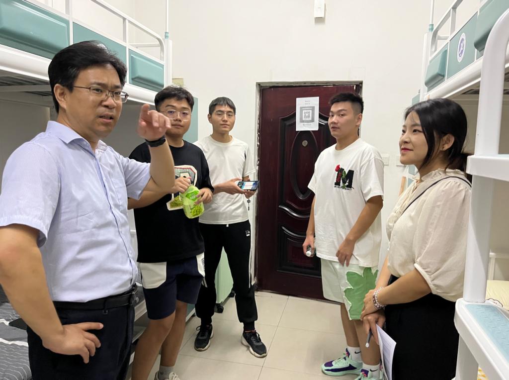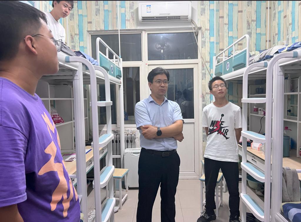 9月6日,在新生入校報到當(dāng)晚,學(xué)院黨委書記宋海洋、學(xué)生工作辦公室主任馬武軍、2023級輔導(dǎo)員盧筱佳深入新生宿舍,詳細了解新生的住宿和生活情況。在走訪過程中,宋海洋與新生進行親切交談,從住宿飲食、生活習(xí)慣、發(fā)展規(guī)劃等多方面深入了解學(xué)生情況,詢問同學(xué)們的報到流程是否順利,關(guān)心同學(xué)們的入住體驗,并進行現(xiàn)場溝通解決,幫助同學(xué)們盡快適應(yīng)新生活。宋海洋叮囑新生與同學(xué)之間要相互關(guān)心,相互幫助,盡快調(diào)整好狀態(tài)、適應(yīng)大學(xué)新環(huán)境,以良好的狀態(tài)迎接大學(xué)生活。