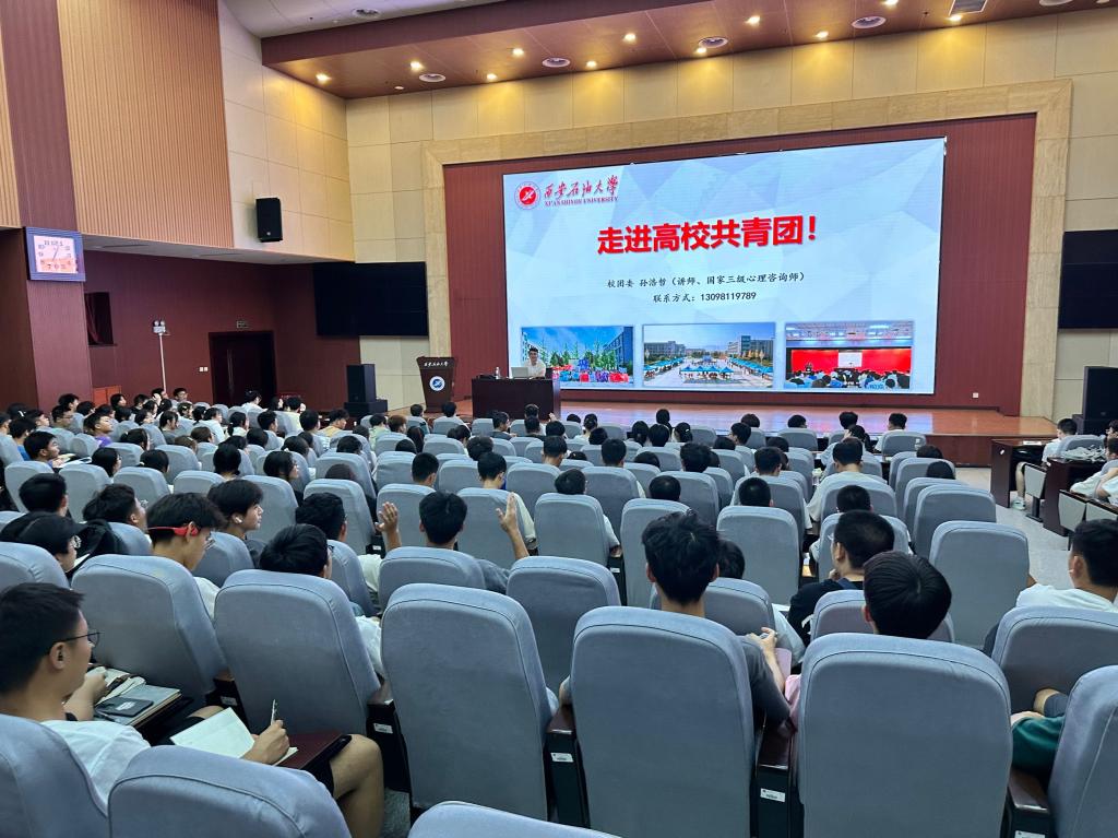 為深入貫徹落實共青團中央關(guān)于加強團的基層組織建設(shè)工作精神,使新生更好的了解共青團的主要知識,增強入團、入黨意識,9月14日晚,“學(xué)院新生入學(xué)教育之走進高校共青團”主題教育活動在鄠邑校區(qū)弘石學(xué)術(shù)報告廳舉行,活動邀請我校校團委副書記孫浩哲擔(dān)任主講。孫浩哲首先從什么是共青團、共青團的光榮歷史、團旗、團徽、團歌等幾個方面為全體新生詳細介紹了團的基本知識,并從組織建設(shè)、校園文化、第二課堂、社會實踐、學(xué)生社團以及學(xué)生會組織等方面將我校共青團工作進行詳細解讀。隨后,孫浩哲還對班級團支部建設(shè)、智慧團建、團關(guān)系轉(zhuǎn)接、青年大學(xué)習(xí)、西安石油大學(xué)第二課堂學(xué)分管理辦法等重點工作進行了交流研討。同時,他通過介紹團總支、班委的職能,強調(diào)了班團一體化建設(shè)的必要性,并希望2023級新生能更加積極的提升自己的思想建設(shè),在中國共青團的引領(lǐng)下努力向中國共產(chǎn)黨靠攏,為共產(chǎn)主義事業(yè)努力奮斗,將個人成長與祖國發(fā)展緊緊相連,在奮斗中綻放出最美麗的青春。