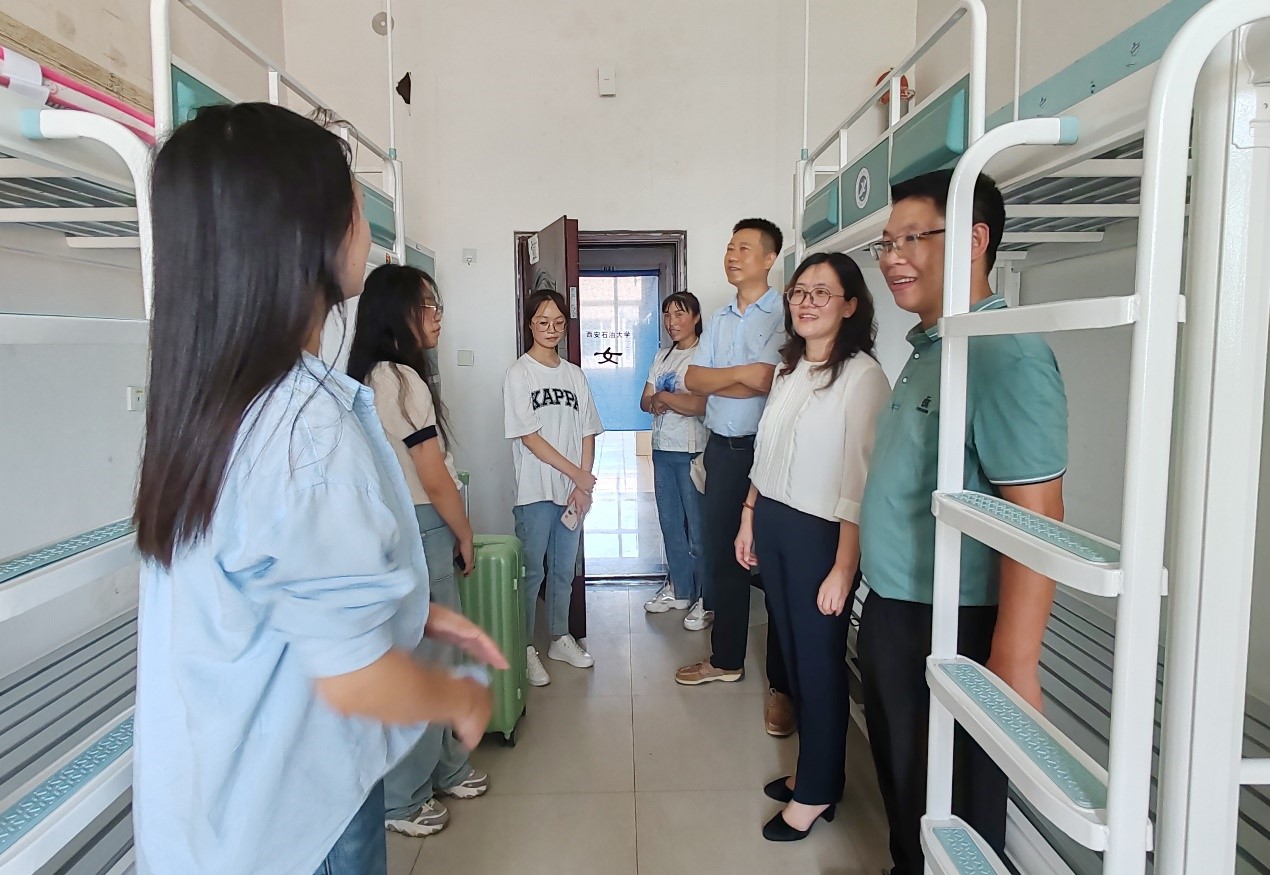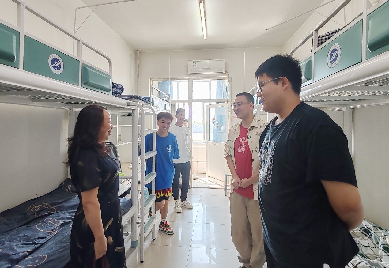 在迎新現(xiàn)場,學(xué)院領(lǐng)導(dǎo)們詳細了解新生報到情況,慰問現(xiàn)場工作人員和學(xué)生志愿者。在走訪宿舍過程中,分別與新生及家長進行親切交流,了解同學(xué)們來校后的感受和對學(xué)校的印象,以及每位新生的名字、家鄉(xiāng)籍貫、專業(yè)等信息,詳細詢問同學(xué)們在衣、食、住、行等方面的問題,聽取新生對學(xué)院迎新工作的感受。叮囑同學(xué)們要盡快調(diào)整好學(xué)習(xí)生活節(jié)奏,完成身份、角色轉(zhuǎn)變,養(yǎng)成良好生活習(xí)慣,以積極良好的狀態(tài)迎接大學(xué)學(xué)習(xí)生活。鼓勵同學(xué)們提前做好大學(xué)期間的學(xué)習(xí)規(guī)劃,勇于嘗試新事物,積極參加各種活動和比賽,腳踏實地,為將來的發(fā)展打下扎實的基礎(chǔ)。