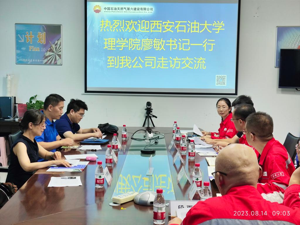 為進一步加強校企合作,開拓就業(yè)市場,2023年8月14日,理學院黨委書記廖敏、應(yīng)用物理系副主任丁繼軍、人文學院畢業(yè)班輔導員李嶠等一行三人前往中國石油天然氣集團公司第六建設(shè)有限公司西北分公司(以下簡稱西北分公司)走訪交流。雙方就加強校企合作、關(guān)注校友成長等進行了座談交流。